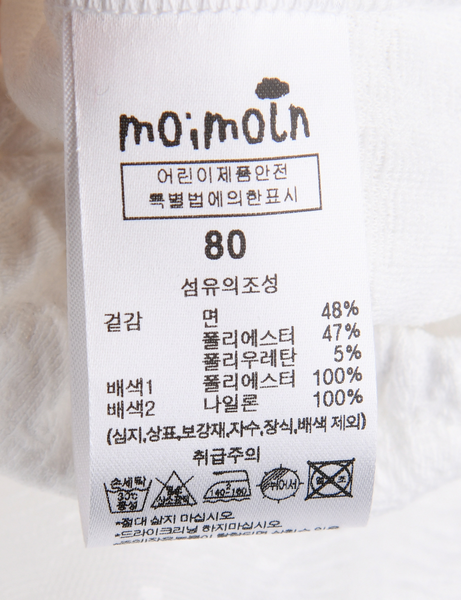 제품소재 (겉감)면48%,폴리에스터47%,폴리우레탄5%(배색1)폴리에스터100%(배색2)나일론100%