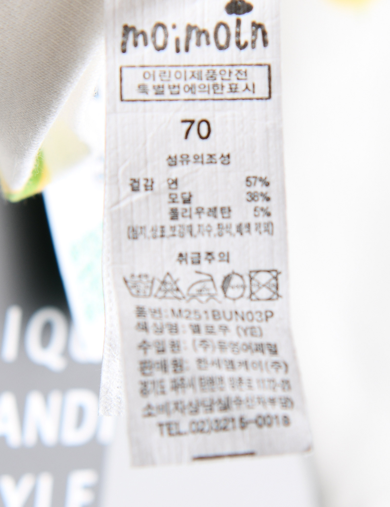 제품소재 (겉감)면57%,모달38%,폴리우레탄5%
