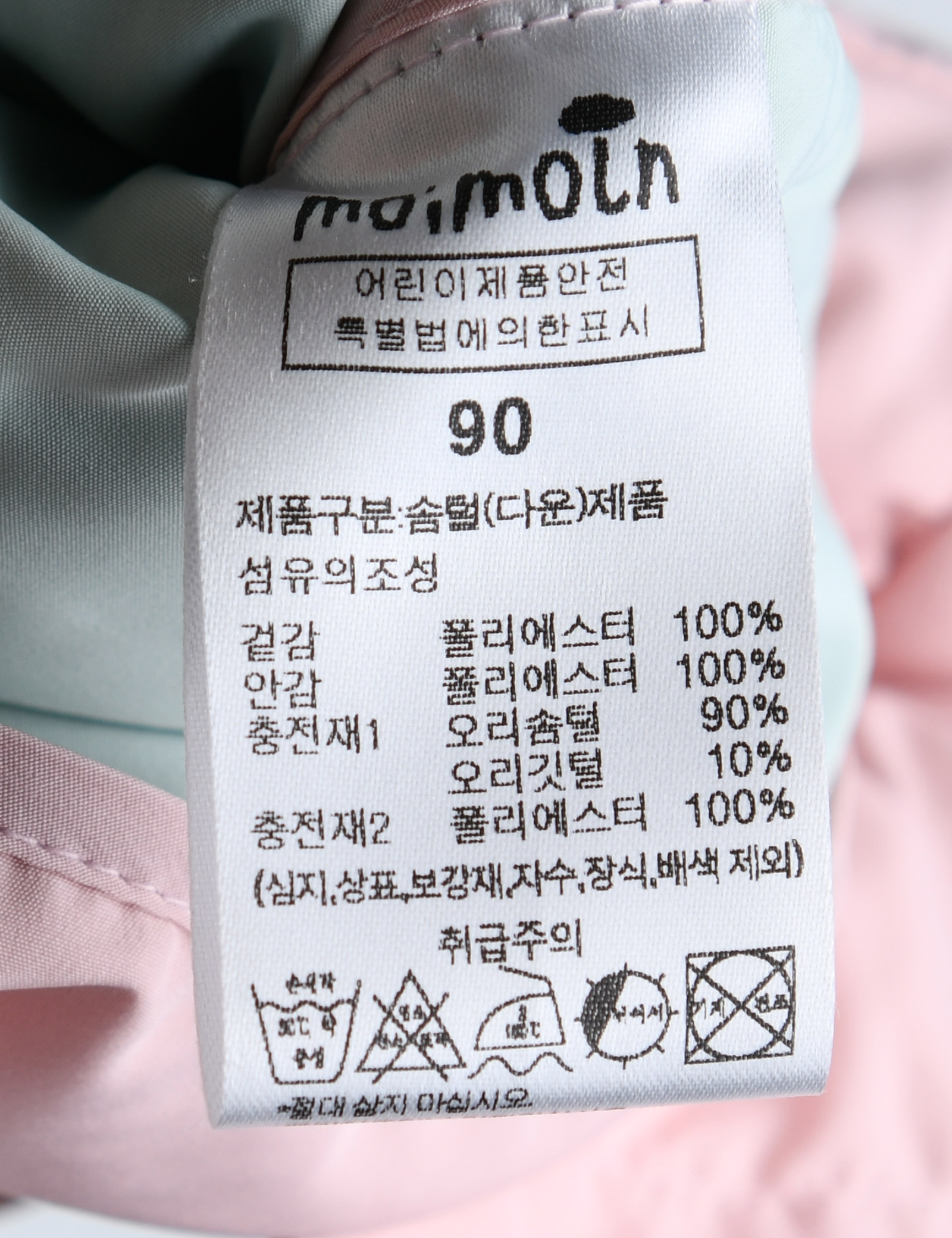 | 세탁방법 및 취급시 주의사항 | 본 세품은 손세탁 하십시오(케어라벨 참고) |