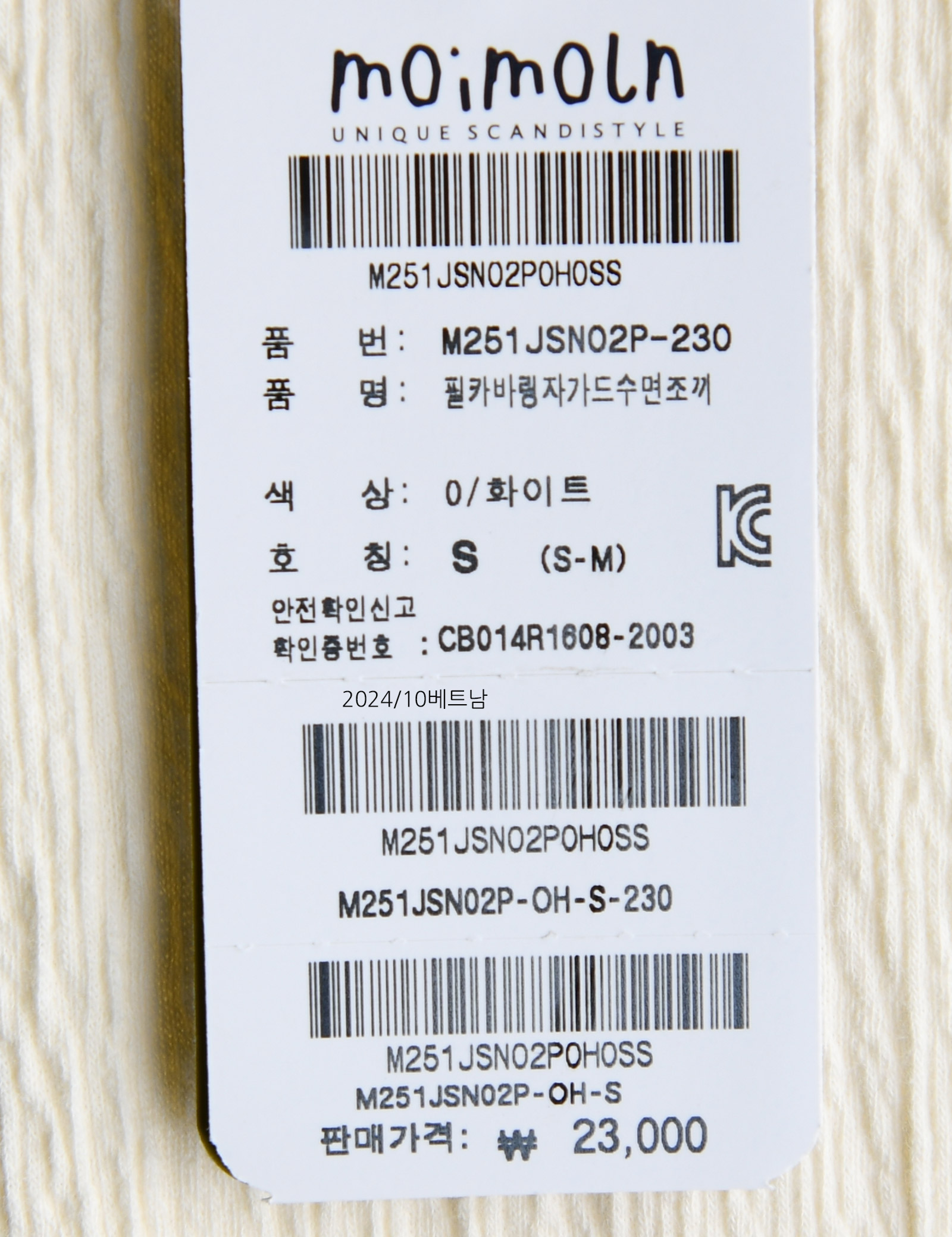 상품명 [모이몰른] 필카바링자카드수면조끼