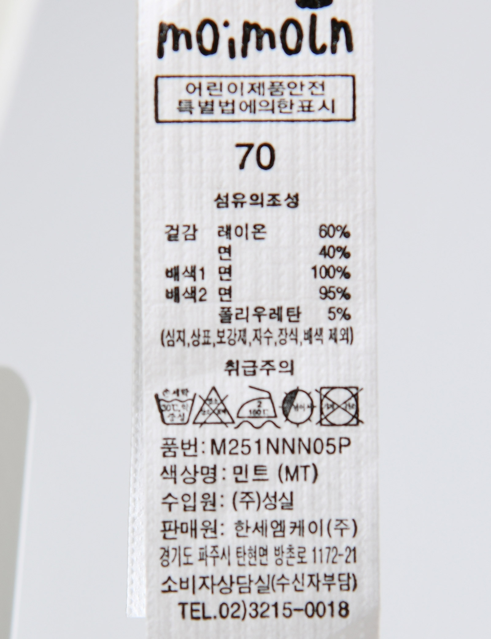 | 세탁방법 및 취급시 주의사항 | 본 세품은 손세탁 하십시오(케어라벨 참고) |