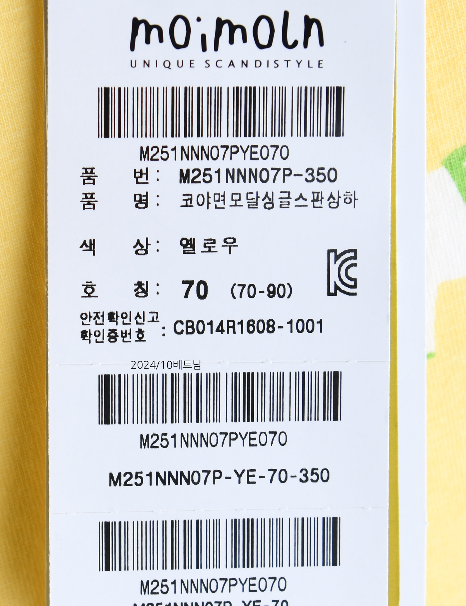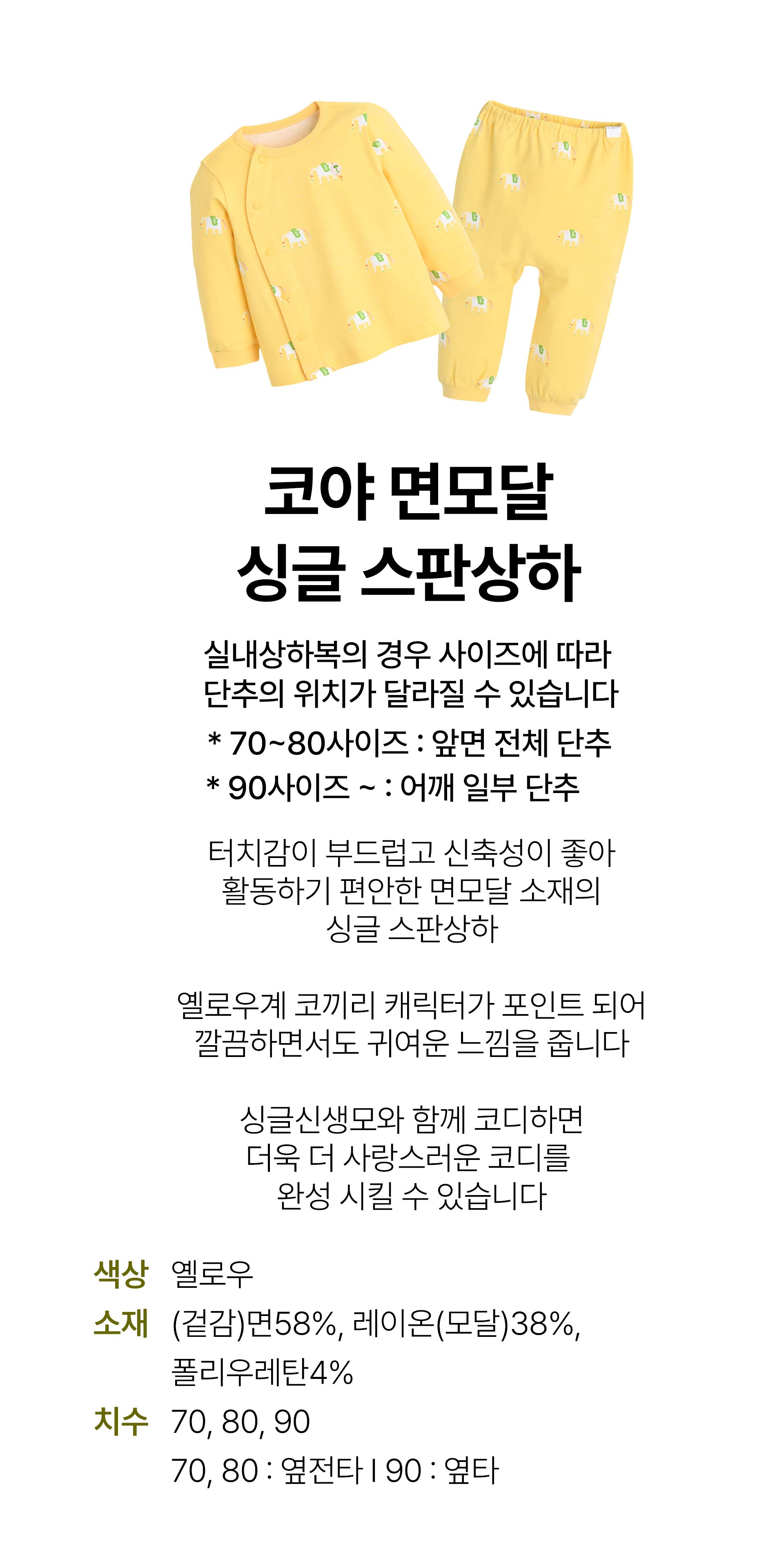 | 상품명 | [모이몰른] 코야면모달싱글스판상하 |