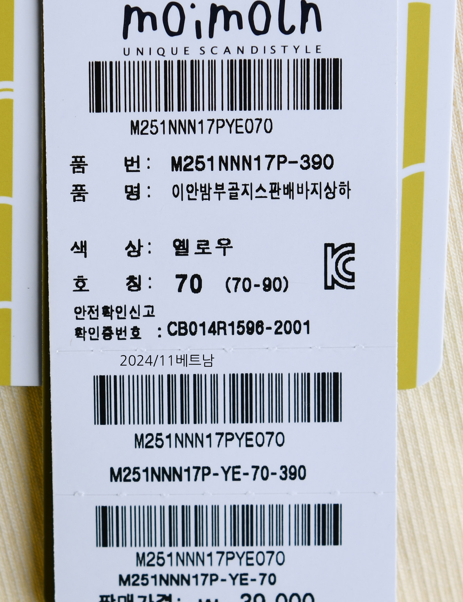 | 상품명 | [모이몰른] 이반밤부골지스판배바지상하 |