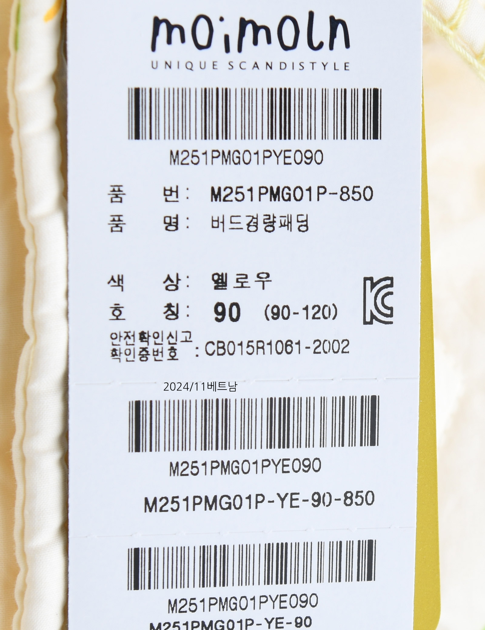 | 상품명 | [모이몰른] 버드경량패딩 |