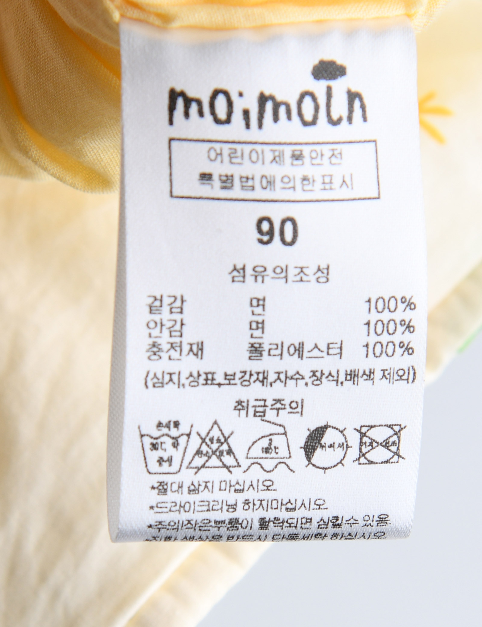 | 세탁방법 및 취급시 주의사항 | 본 세품은 손세탁 하십시오(케어라벨 참고) |