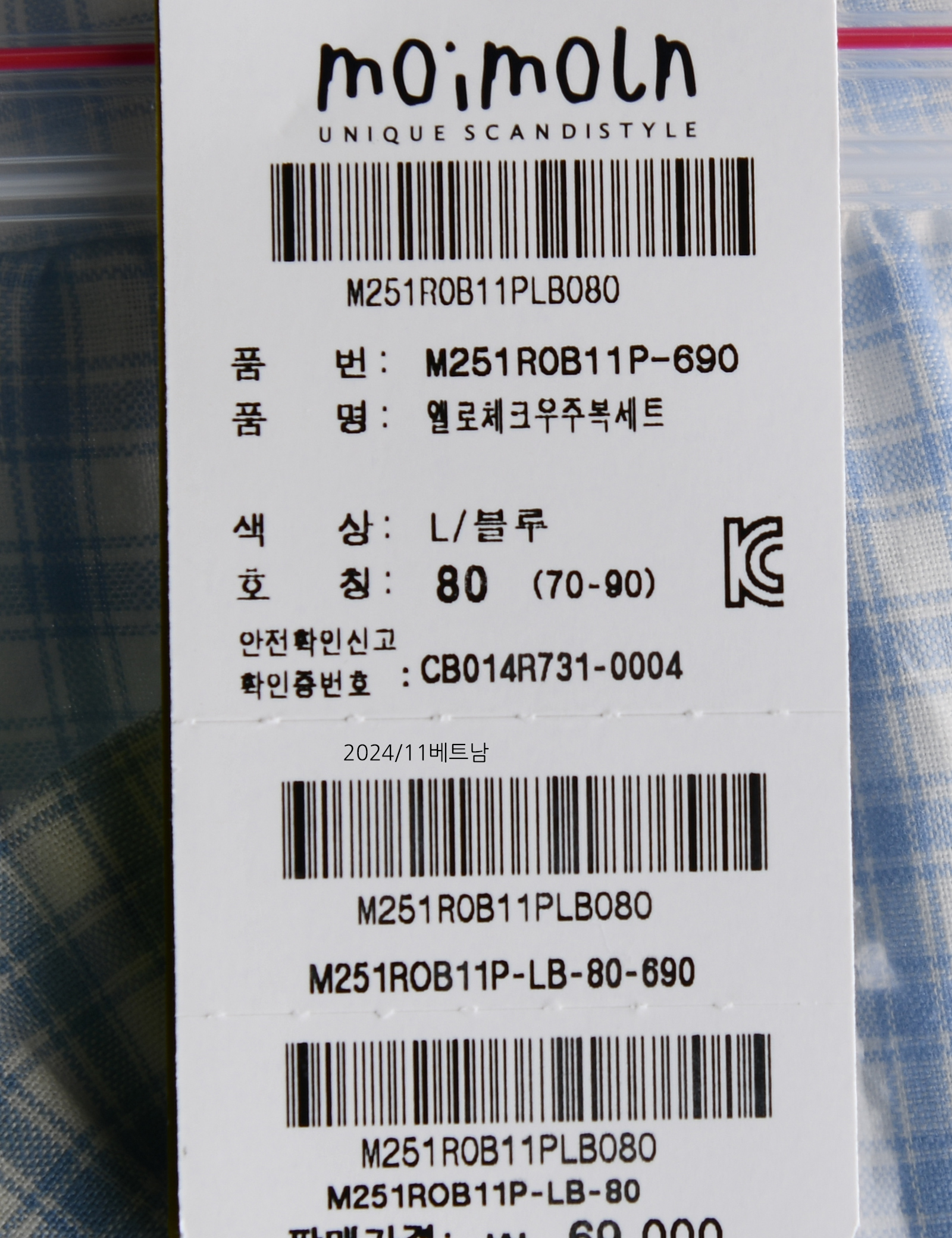 | 상품명 | [모이몰른] 엘로체크우주복세트 |
