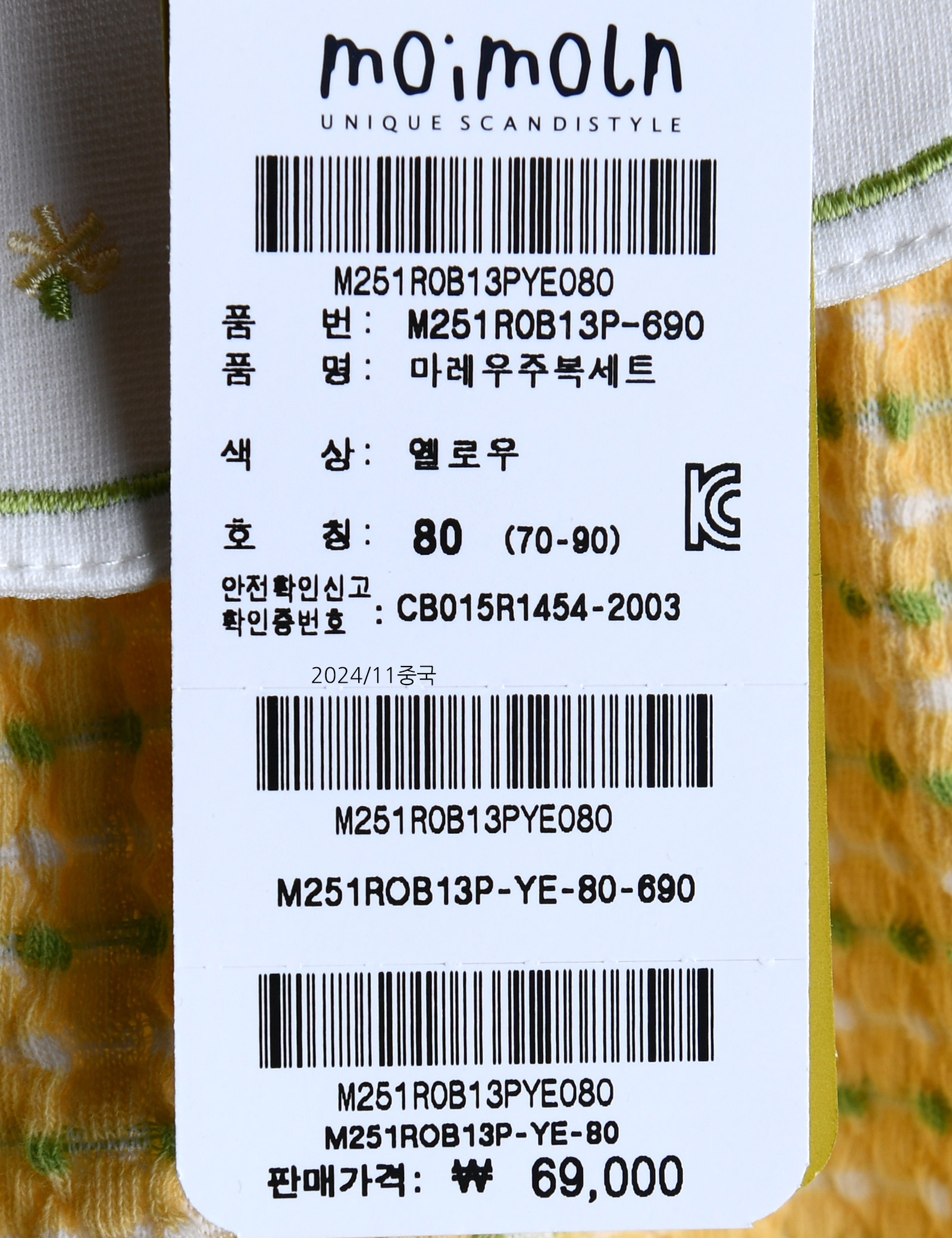상품명 [모이몰른] 마레우주복세트