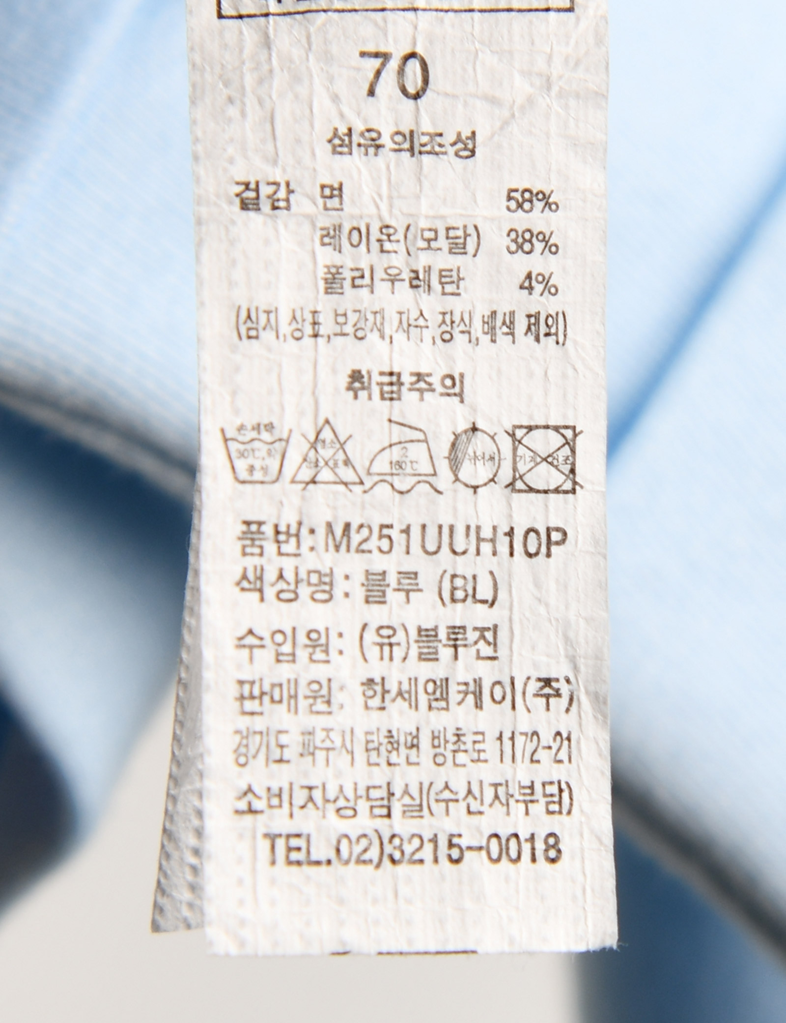 | 세탁방법 및 취급시 주의사항 | 본 세품은 손세탁 하십시오(케어라벨 참고) |