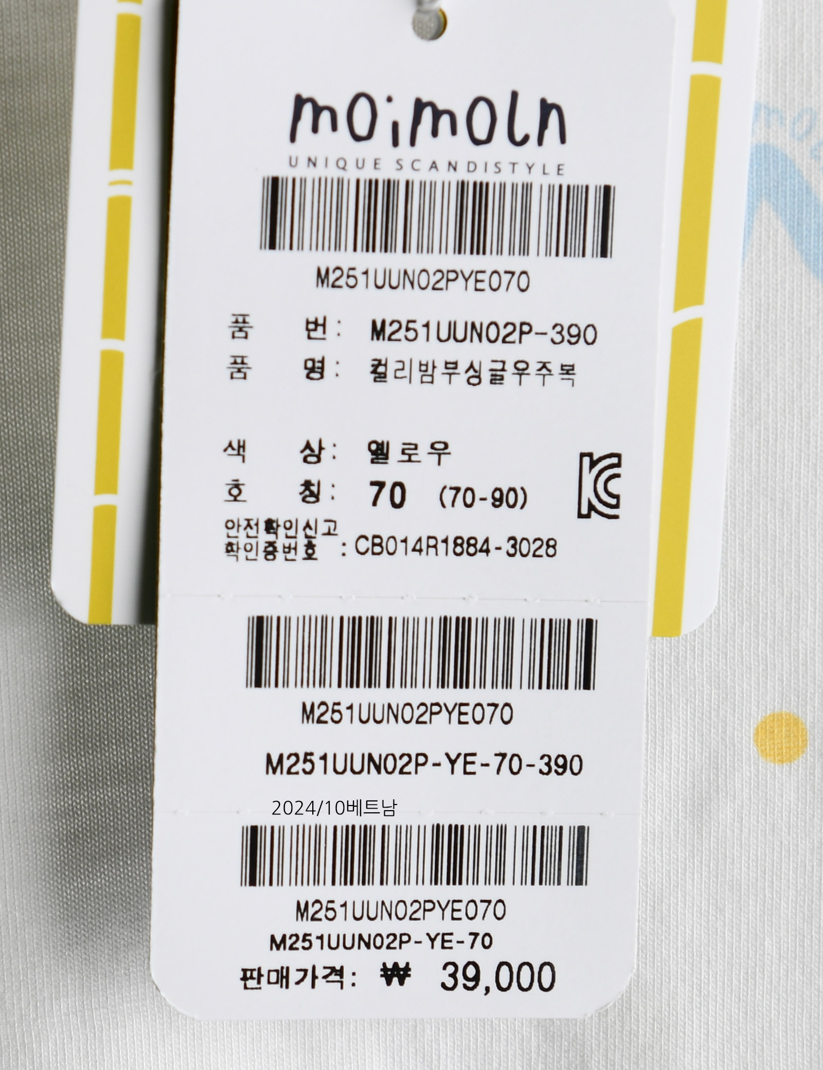 | 상품명 | [모이몰른] 컬리밤부싱글우주복 |