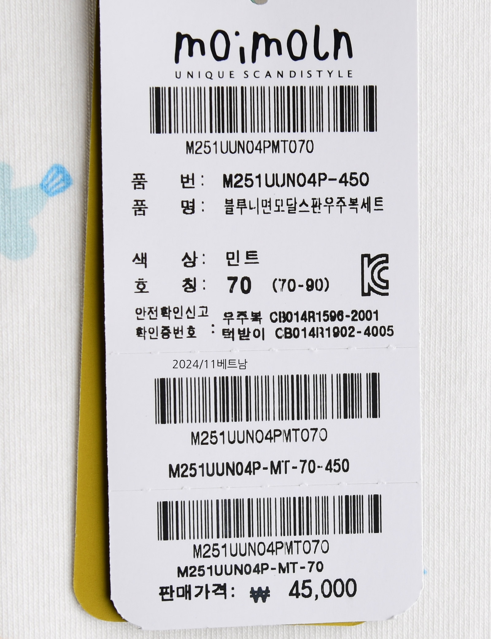 | 상품명 | [모이몰른] 블루니면모달스판우주복세트 |