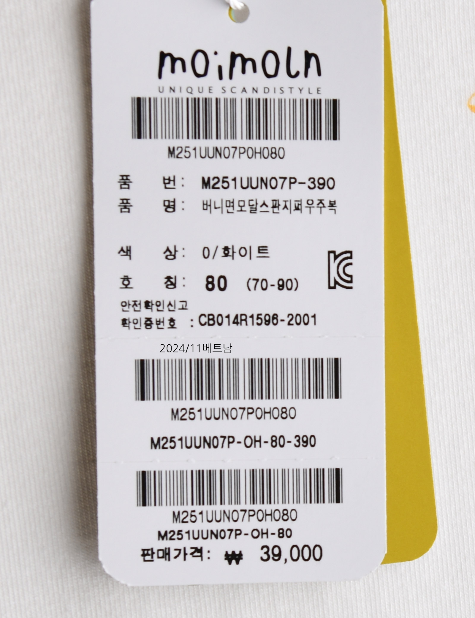 | 상품명 | [모이몰른] 버니면모달스판지퍼우주복 |