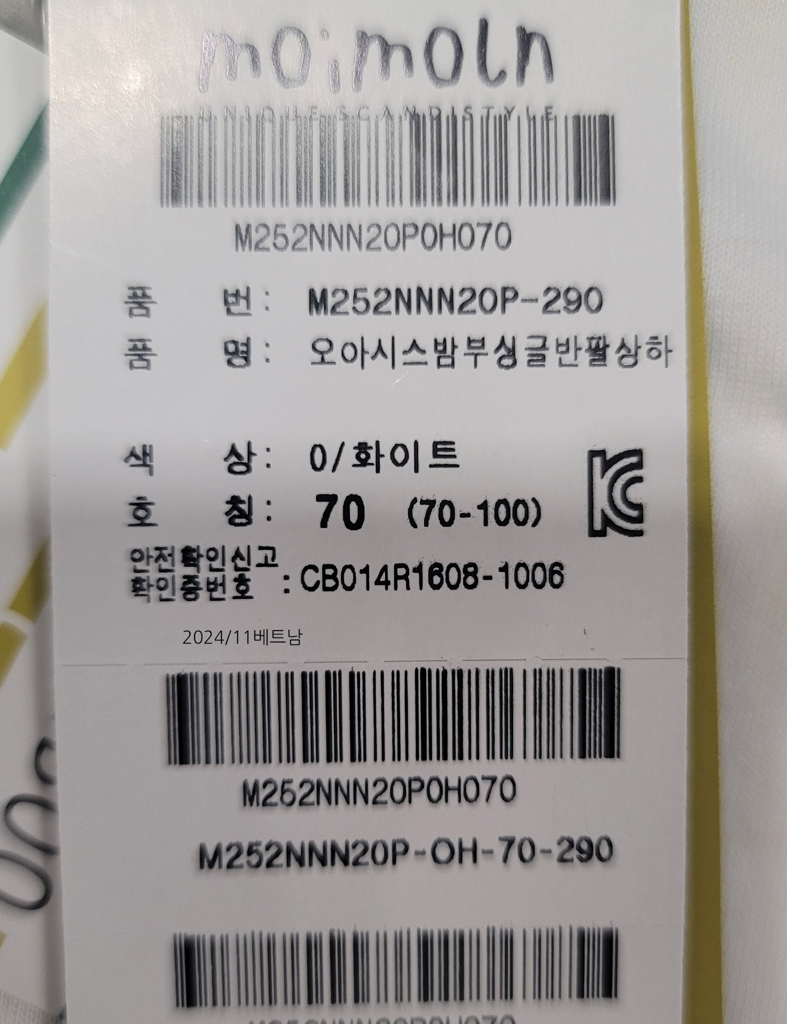 | 상품명 | [모이몰른] 오아시스밤부싱글반팔상하 [여름] |