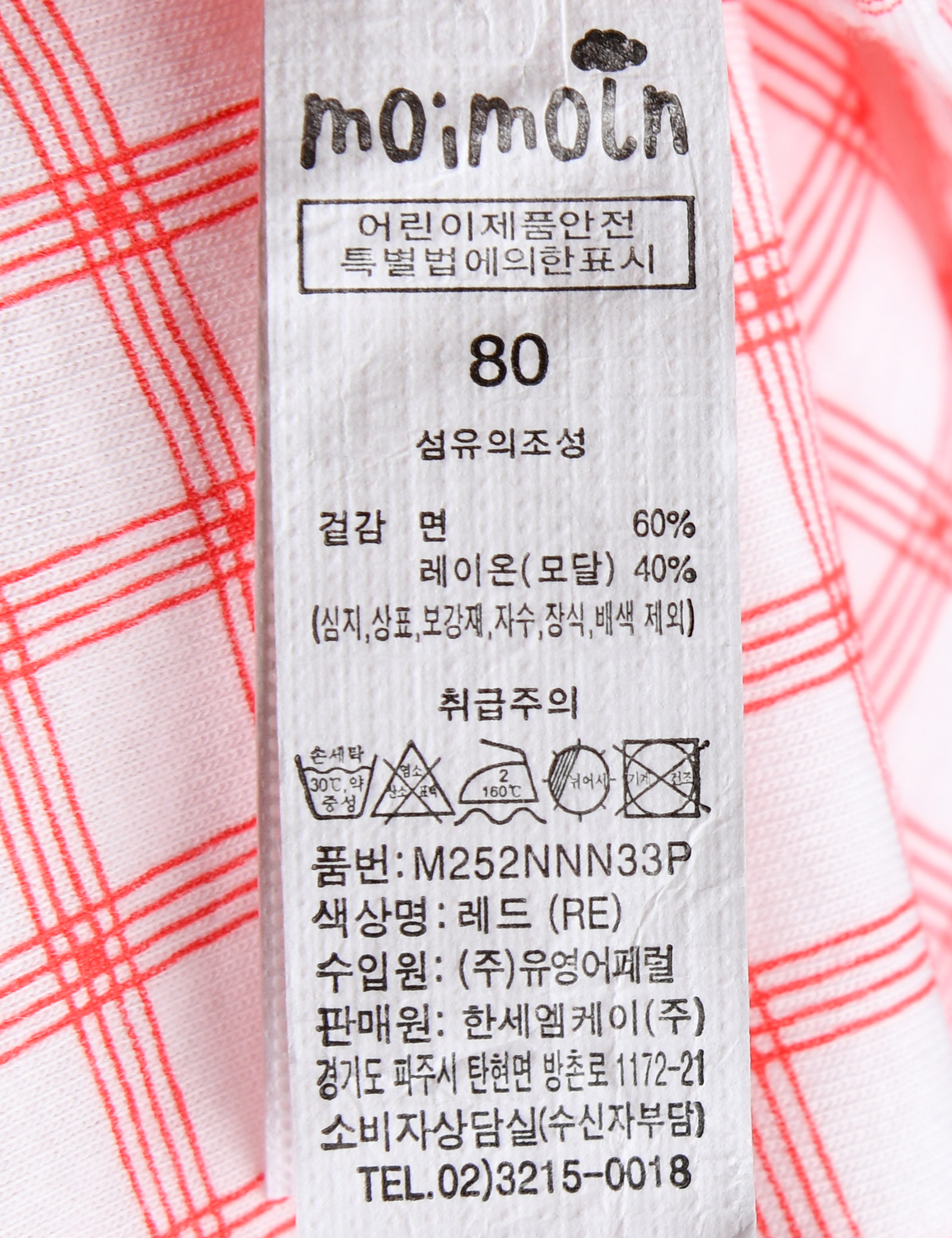 제품소재 (겉감)면60%,모달40%