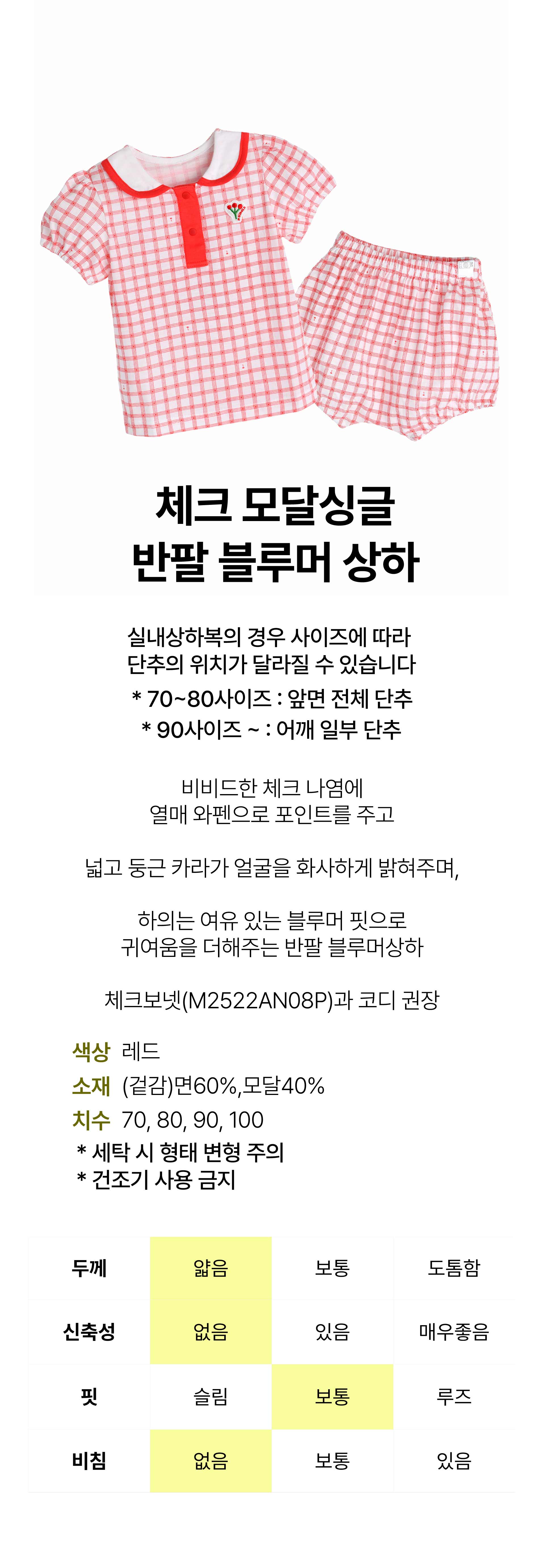 상품명 [모이몰른] 체크모달싱글반팔블루머상하 [여름]