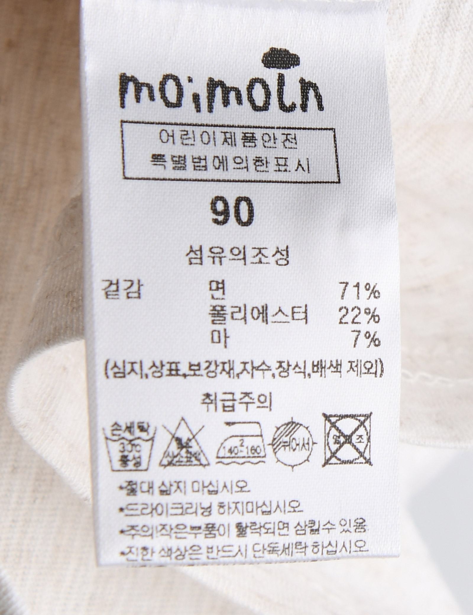 | 세탁방법 및 취급시 주의사항 | 본 세품은 손세탁 하십시오(케어라벨 참고) |