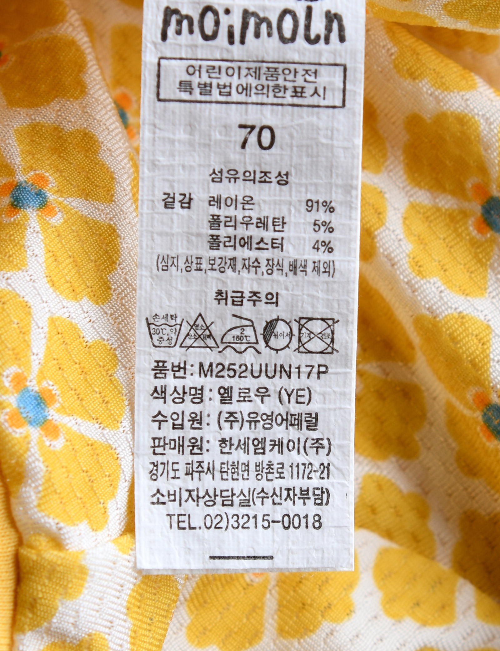 제품소재 (겉감)레이온91%,폴리우레탄5%,폴리에스터4%