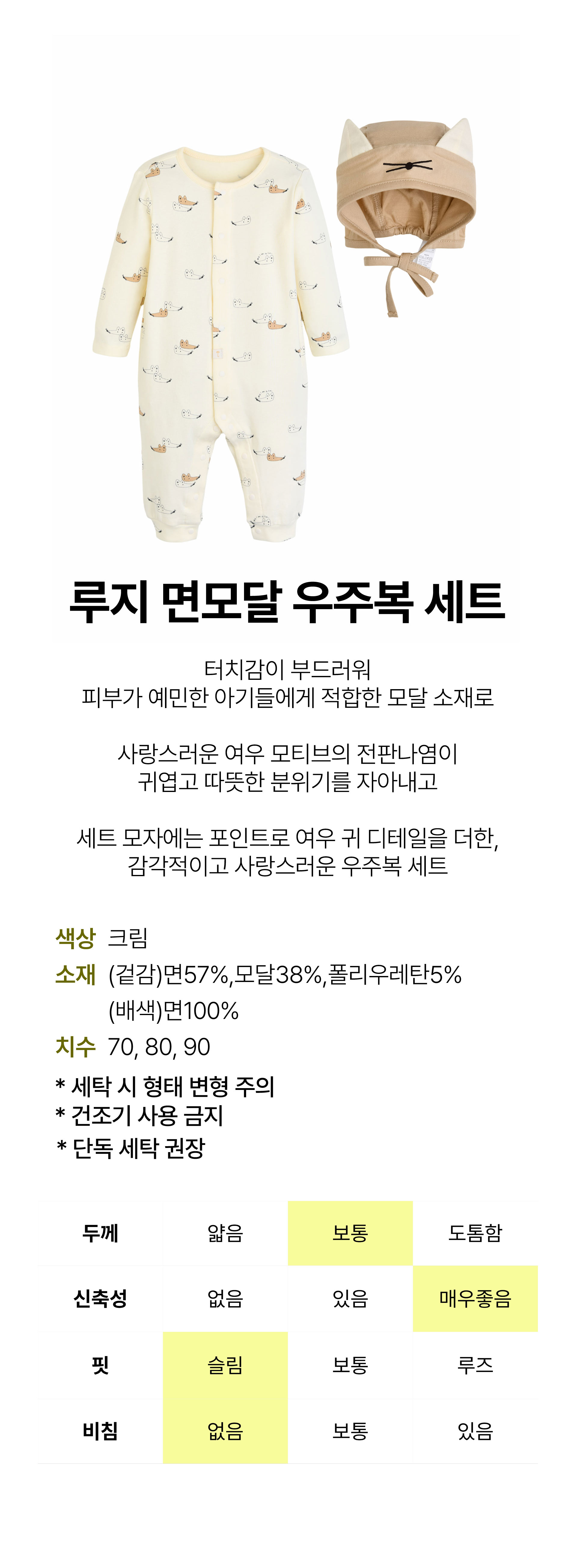 | 상품명 | [모이몰른] 루지면모달우주복세트 [가을] |