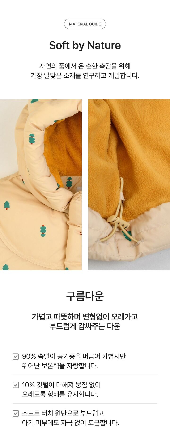브랜드 홈 바로가기| 제품소재 | (겉감)나일론100%(안감1/안감2/충전재2)폴리에스터100%(충전재1)오리솜털90%,오리깃털10% |