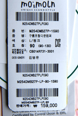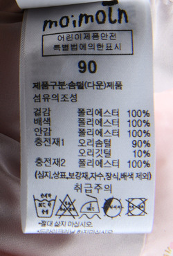 | 세탁방법 및 취급시 주의사항 | 본 세품은 손세탁 하십시오(케어라벨 참고) |