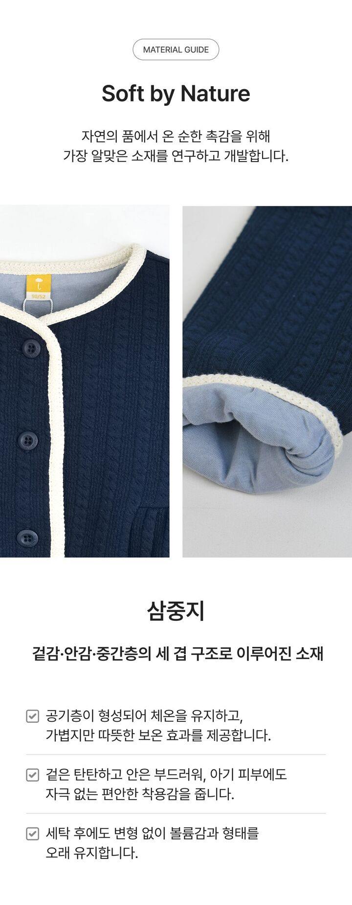 | 세탁방법 및 취급시 주의사항 | 본 세품은 손세탁 하십시오(케어라벨 참고) |