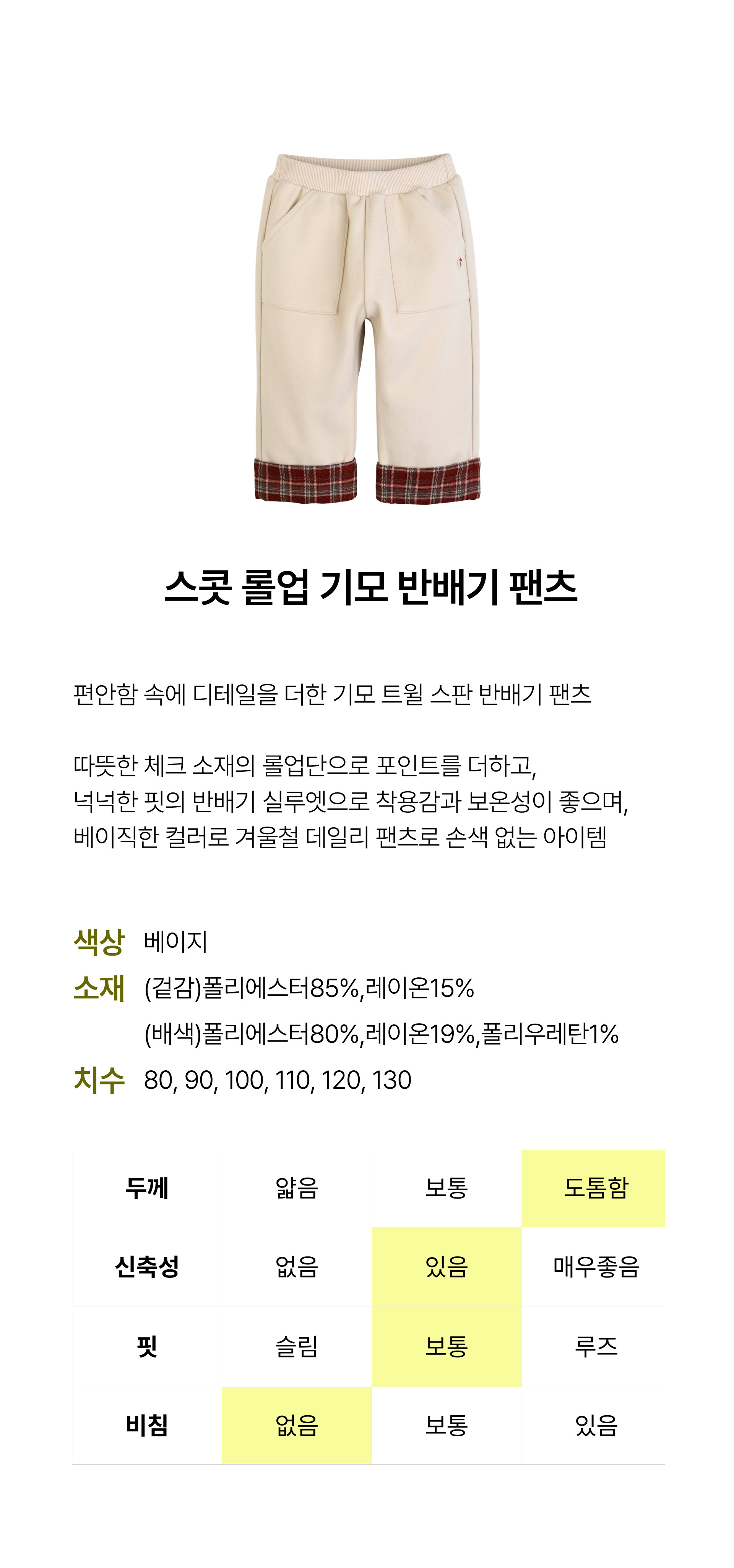 | 상품명 | [모이몰른] 스콧롤업기모반배기팬츠 [겨울] |