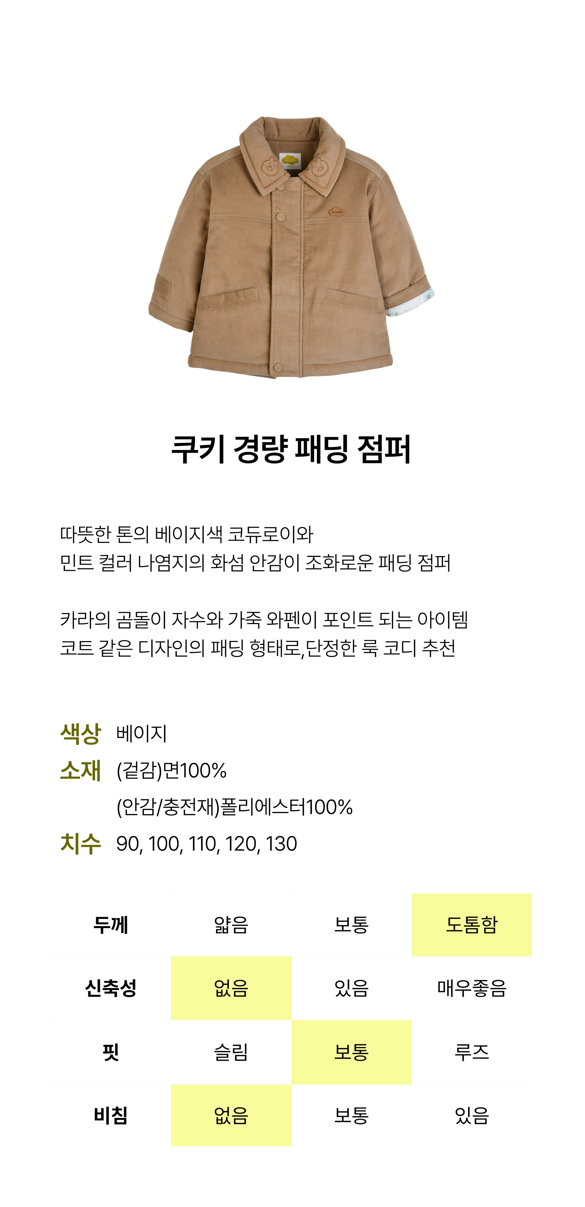 | 상품명 | [모이몰른] 쿠키경량패딩점퍼 [겨울] |