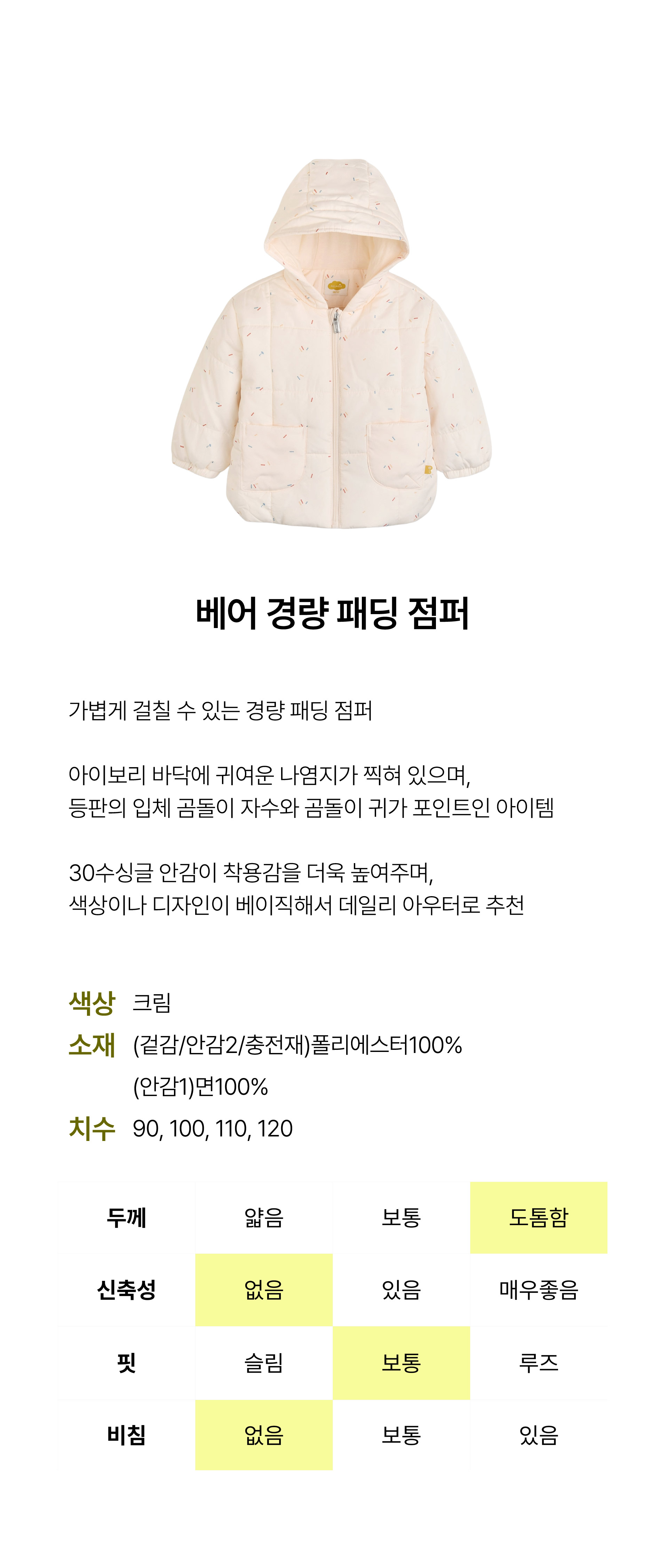 | 상품명 | [모이몰른] 베어경량패딩점퍼 [겨울] |