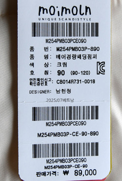 | 세탁방법 및 취급시 주의사항 | 본 세품은 손세탁 하십시오(케어라벨 참고) |