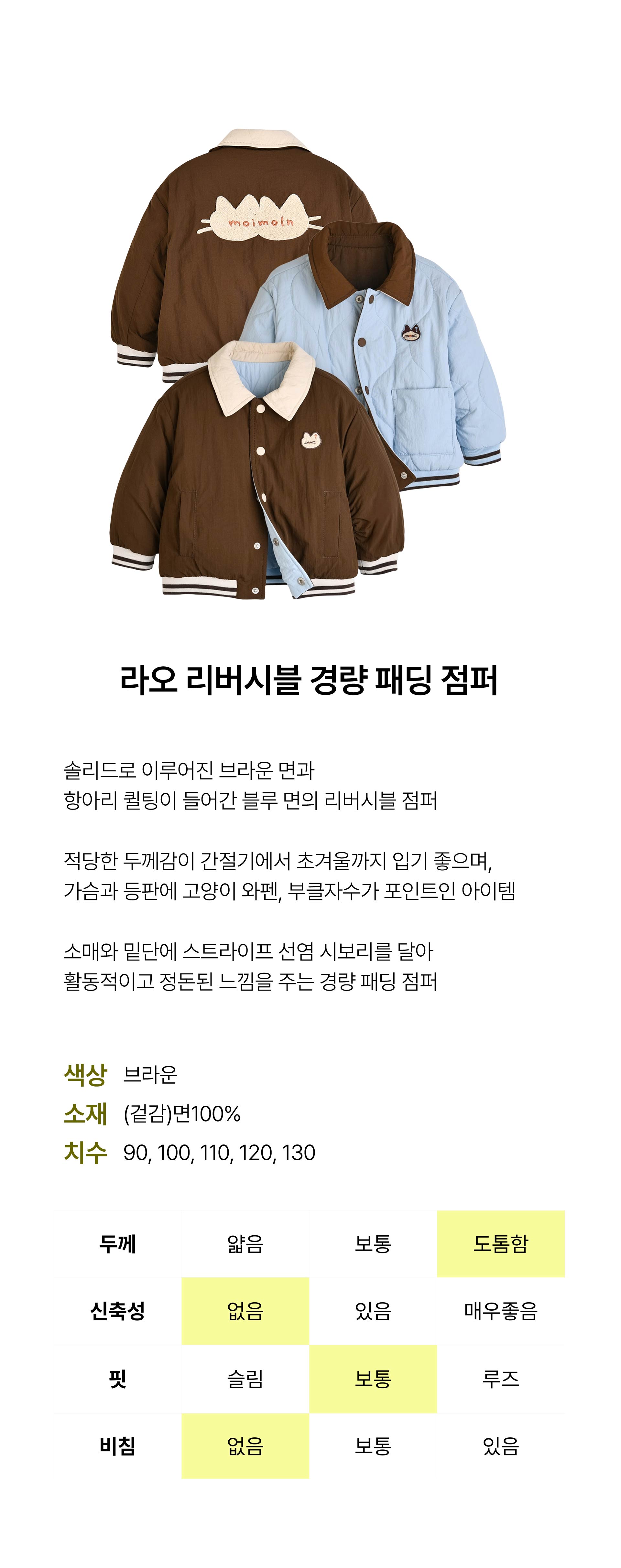 | 상품명 | [모이몰른] 라오리버시블경량패딩점퍼 [겨울] |