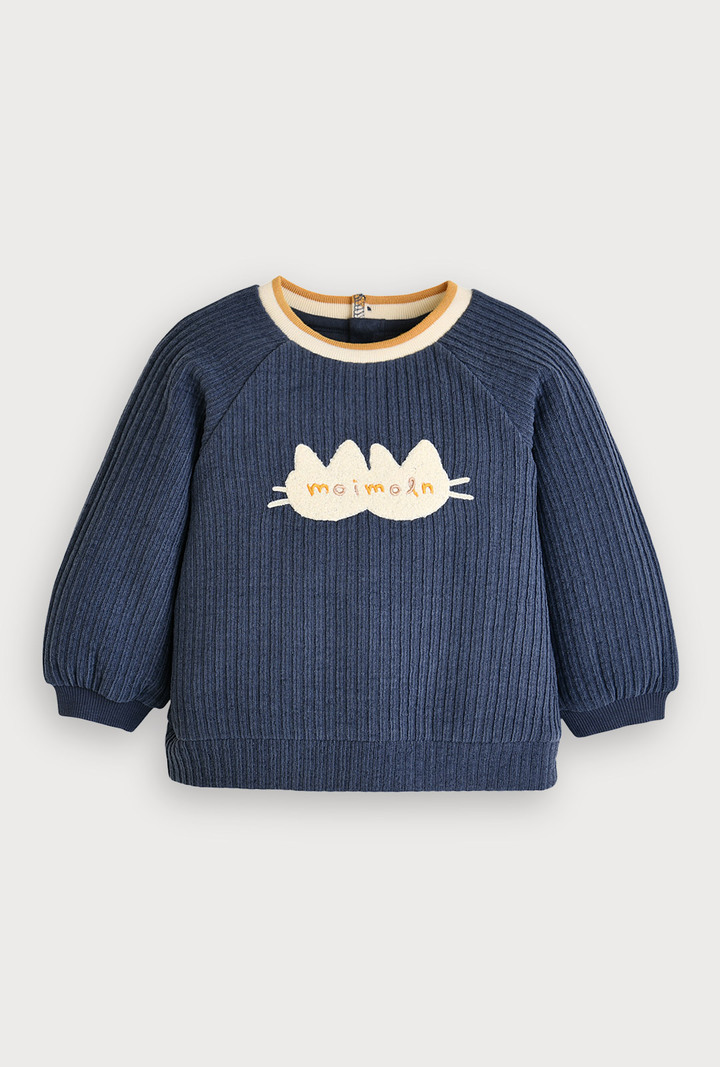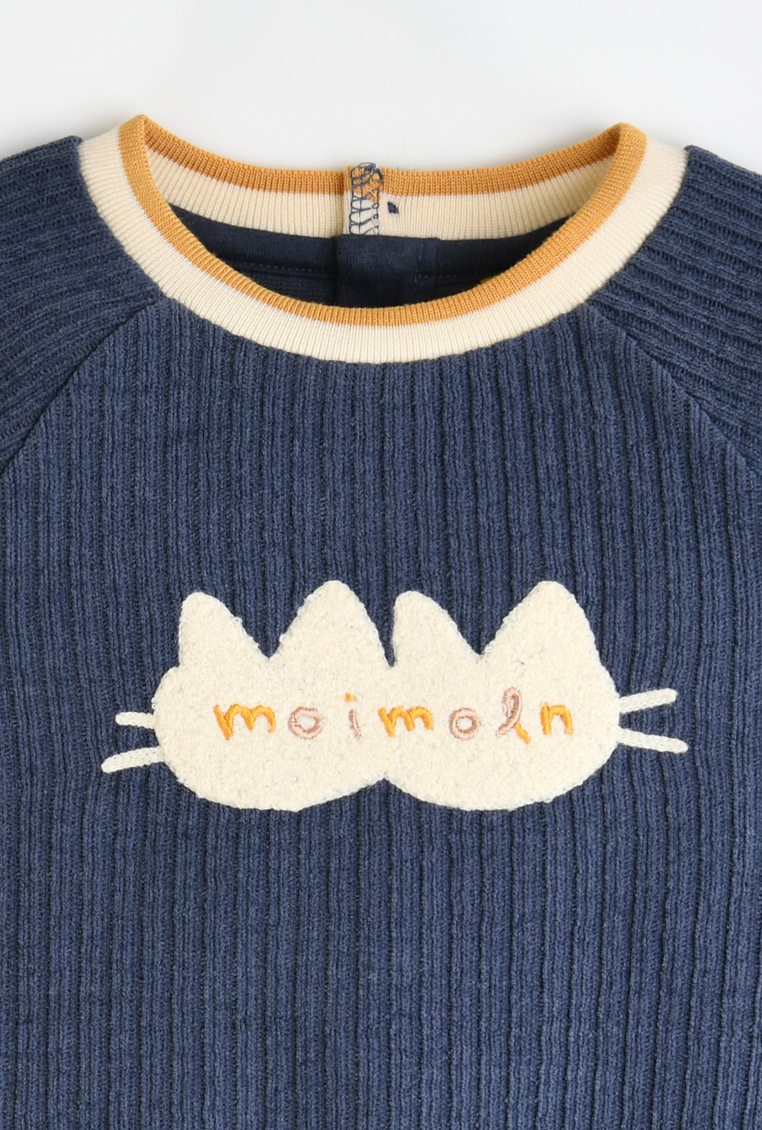 부드럽고 스판성이 좋은 골지 원단에귀여운 고양이 부클자수가 놓여져 있어데일리하게 활용하기 좋은 상하복으로,적당한 두께감의 원단이라겨울철 등원룩으로편하게 입히기에도 좋은 아이템.네크의 요꼬 립 컬러 배색이 화사하면서도캐주얼한 포인트가 되는 디자인의 아이템
