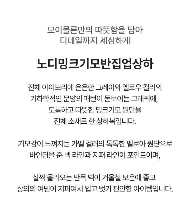 | 상품명 | [모이몰른] 노디밍크기모반집업상하 [겨울] |