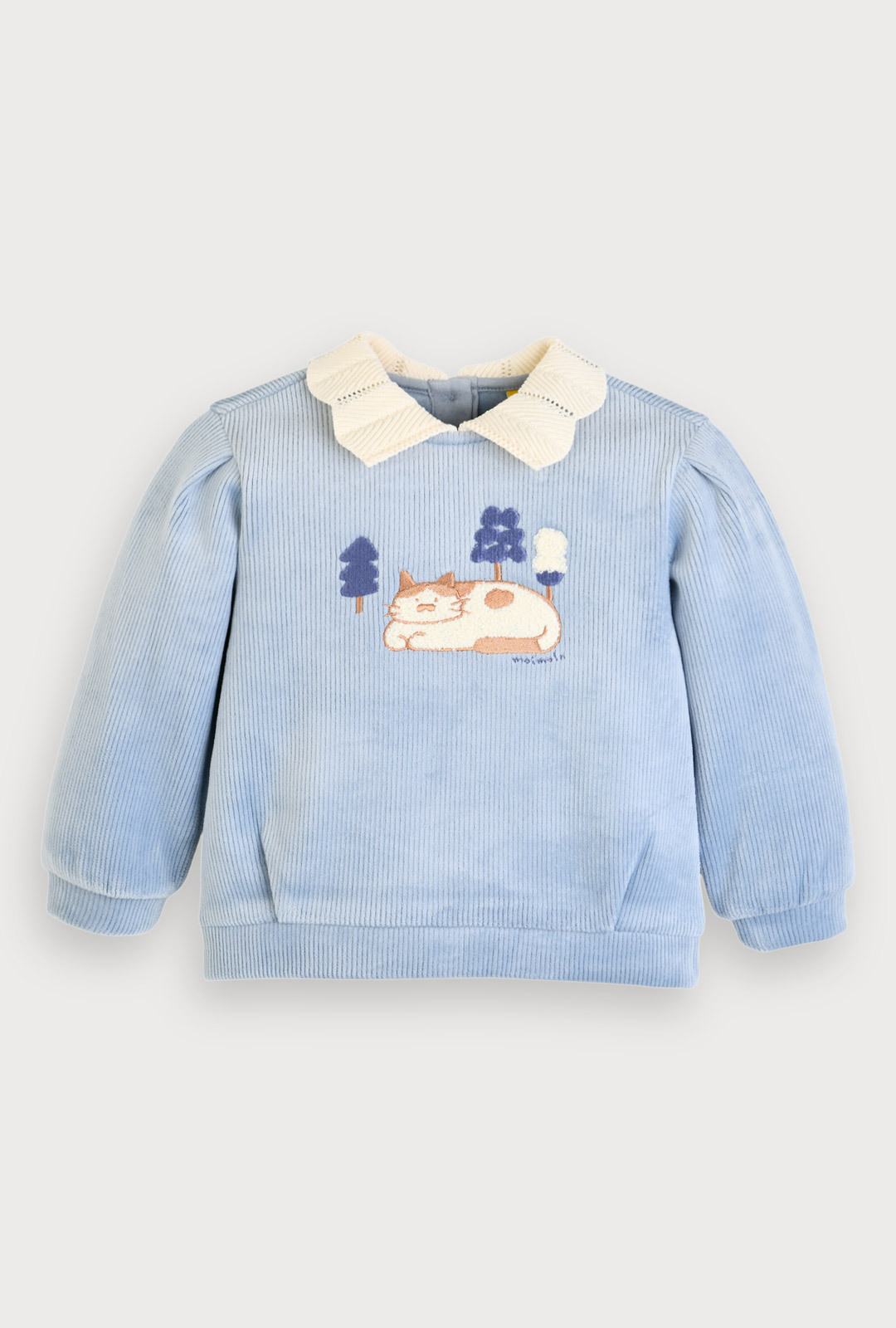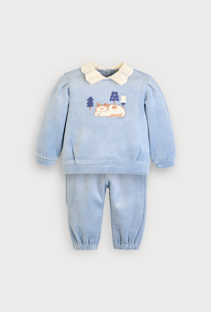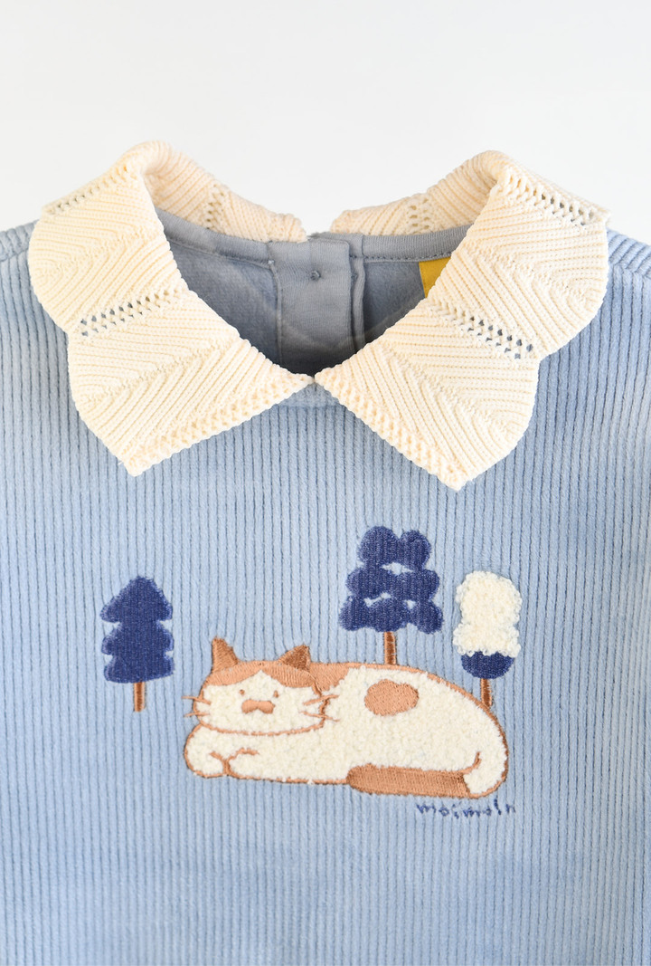 부드럽고 신축성 좋은 벨로아 소재에속기모로 보온성을 더한 기모 상하복.편안한 착용감으로 활용도가 높으며,화사한 아이보리 요꼬 시보리 카라가따뜻하면서도 사랑스러운 포인트이며고양이 모티브의 포슬포슬한 부클자수로포근하고 따스한 무드를 더한 아이템