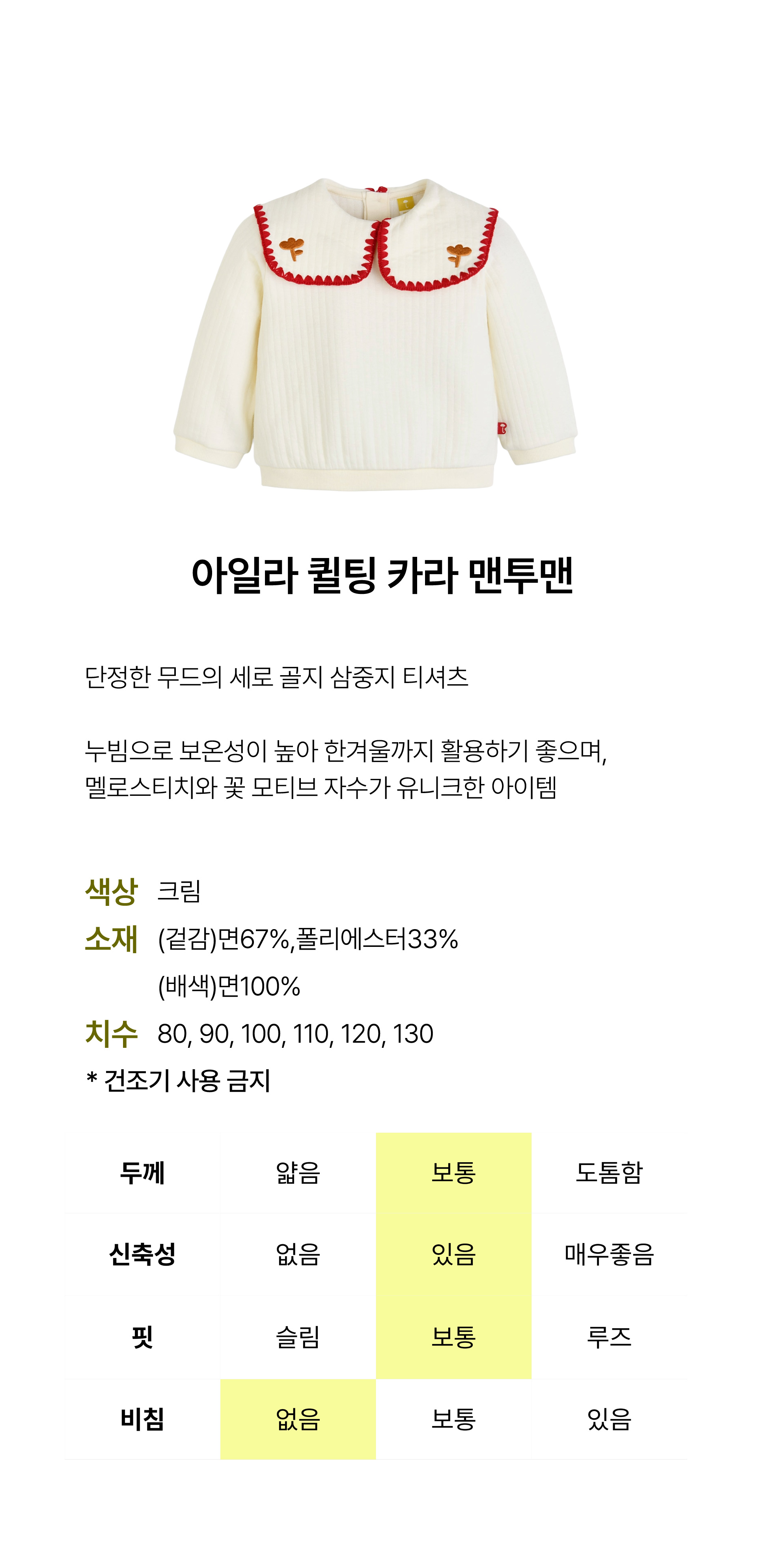 상품명 [모이몰른] 아일라퀼팅카라맨투맨 [겨울]