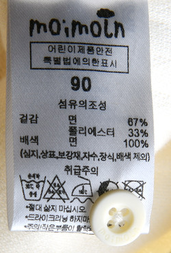 제품소재 (겉감)면67%,폴리에스터33%(배색)면100%