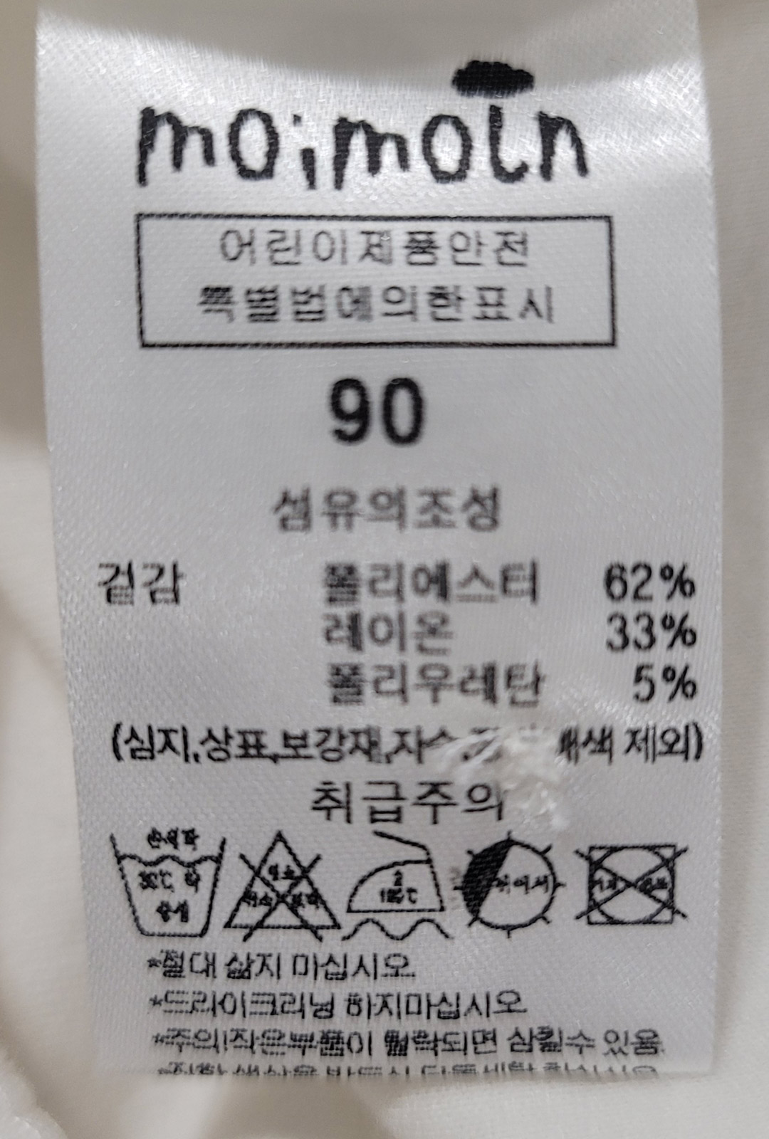 | 세탁방법 및 취급시 주의사항 | 본 세품은 손세탁 하십시오(케어라벨 참고) |