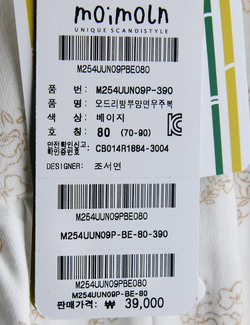 상품명 [모이몰른] 오드리밤부양면우주복 [겨울]