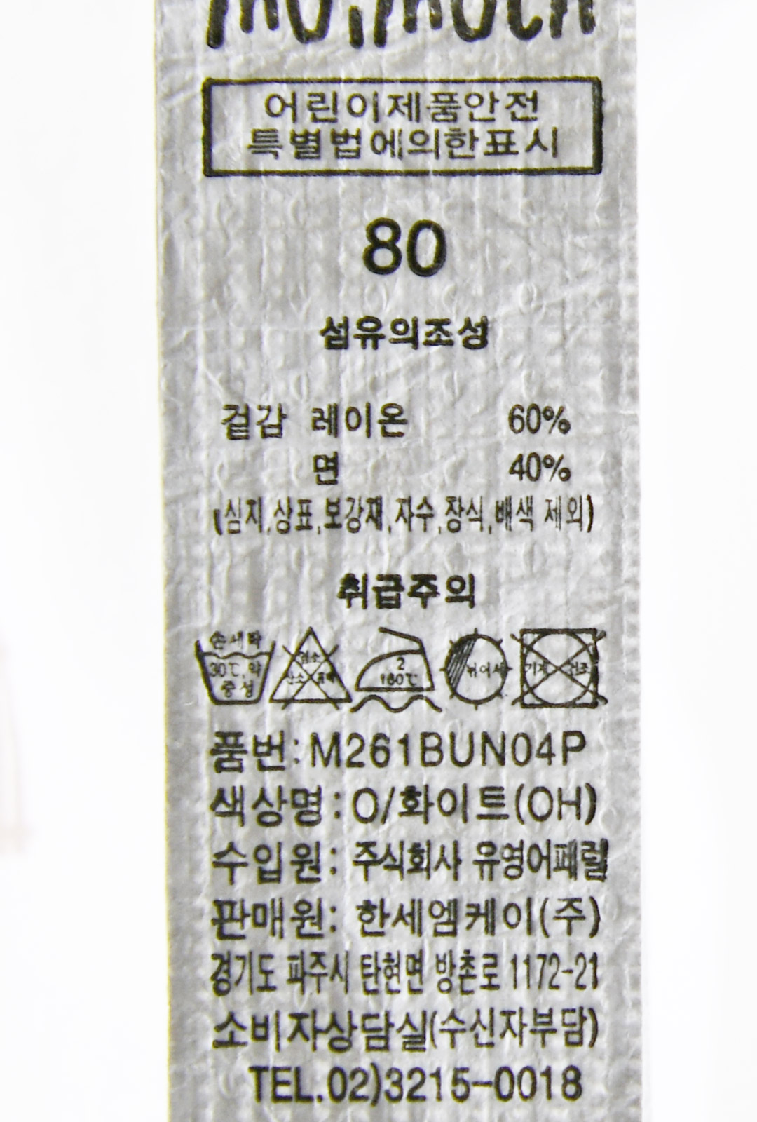 | 세탁방법 및 취급시 주의사항 | 본 세품은 손세탁 하십시오(케어라벨 참고) |