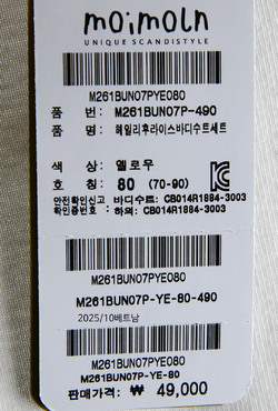 바디수트 (30수 후라이스 면 100%): 부드러운 터치감과 좋은 신축성을 가진 소재