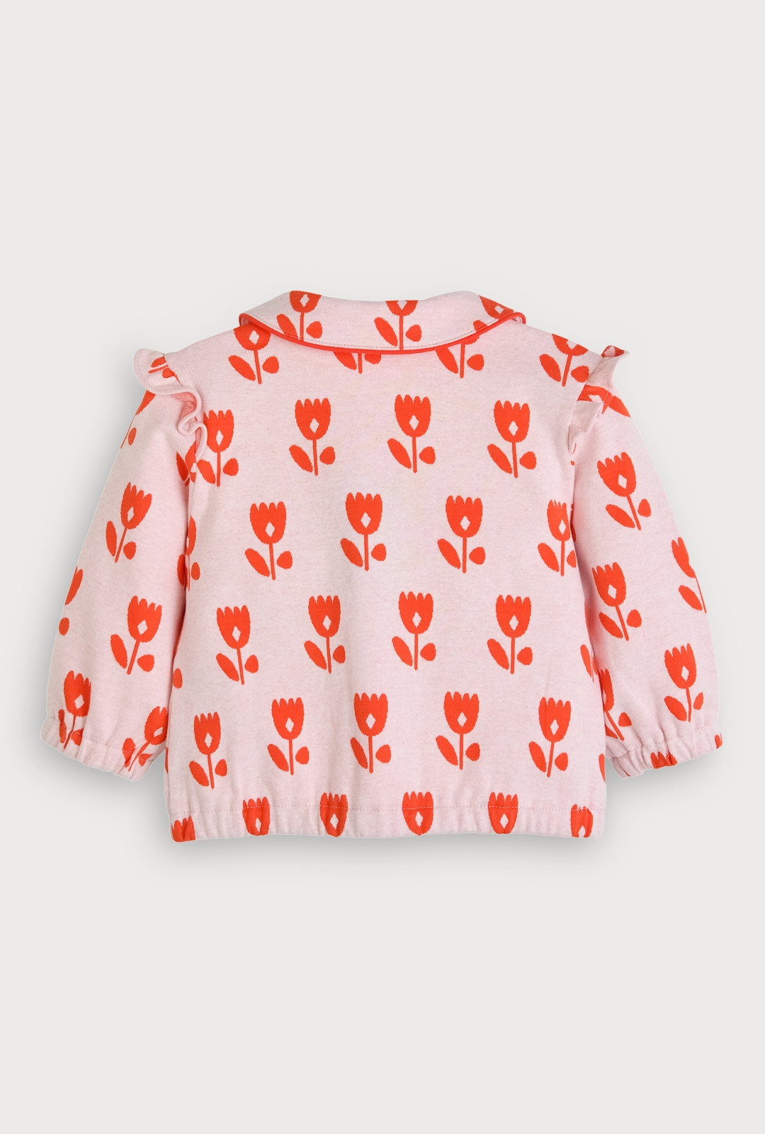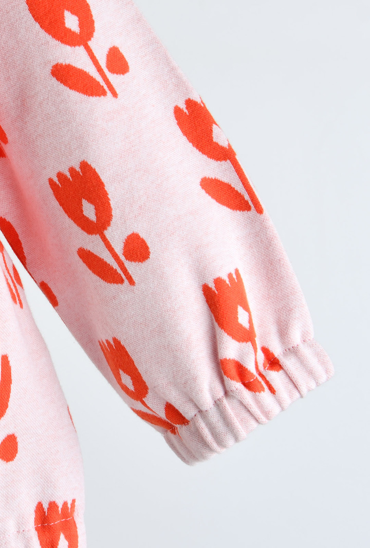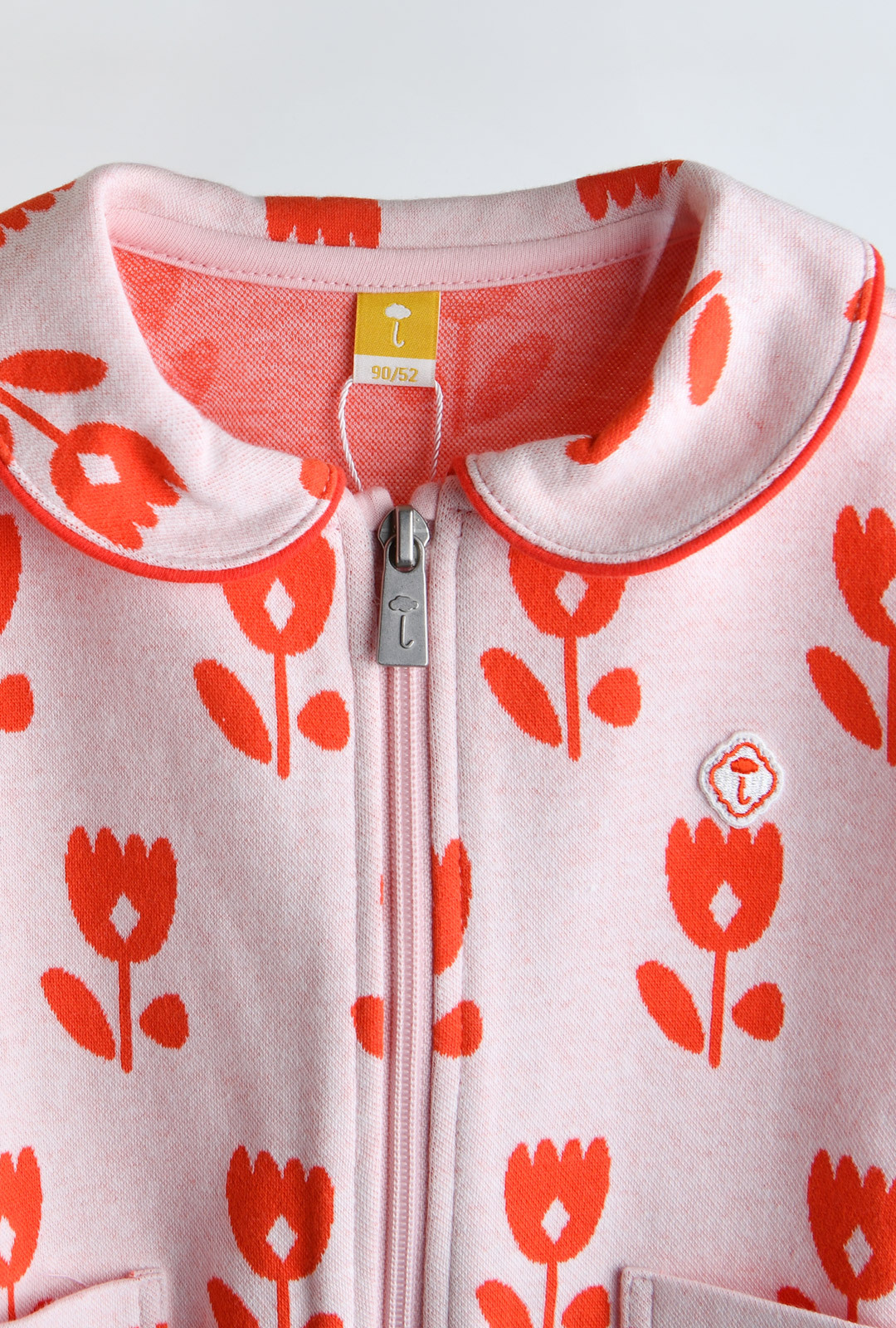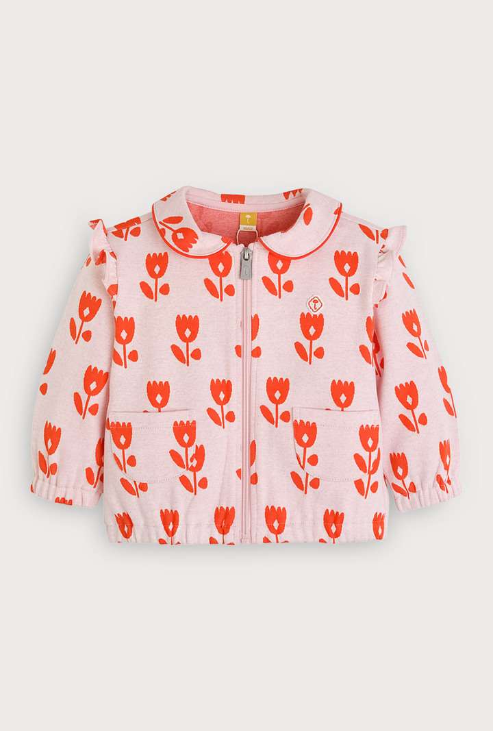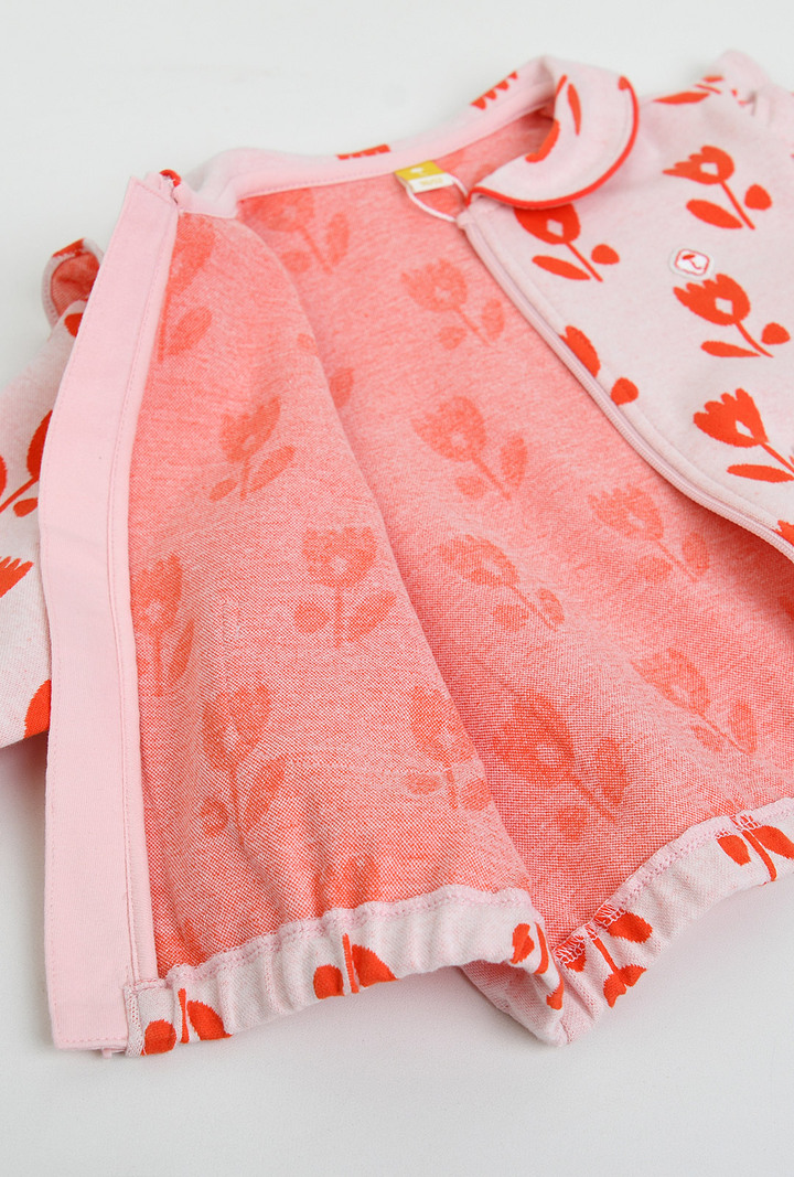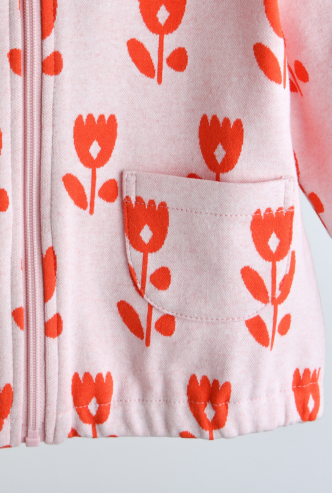큼직한 튤립 모티브와 레드 파이핑 포인트가 돋보이는 베이비·토들러용 자카드 집업 점퍼 상품 설명 큼직한 튤립 모티브가 포인트가 되는 자카드 면 집업 점퍼 입을수록 더 좋아지는 데일리 웨어이자 어깨 라인 쁘띠한 프릴 디테일 적용 부담 없이 매일 찾게 되는 아이템이며 카라 끝 레드 컬러 파이핑 포인트 편안함 속에서 완성되는 세련됨을 느낄 수 있는 베이비·토들러용 아우터 디테일 설명 큼직한 튤립 모티브를 활용한 유니크한 디자인 어깨 라인의 쁘띠한 프릴 디테일로 귀여운 감성 연출 카라 끝부분 레드 컬러 파이핑 마감으로 깔끔한 포인트 부여 활동이 편리한 전면 지퍼 여밈 방식 적용 손세탁 권장 및 물에 장시간 담가두지 않도록 주의 핏가이드 핏 보통 두께 보통 / 신축성 있음 / 비침 없음 적당한 보통 핏으로 정사이즈 선택 시 편안하고 예쁜 착용 가능 소재 설명 겉감(다이마루 자카드): 부드러운 면 소재에 입체적인 조직감을 더해 포근하고 탄탄한 소재