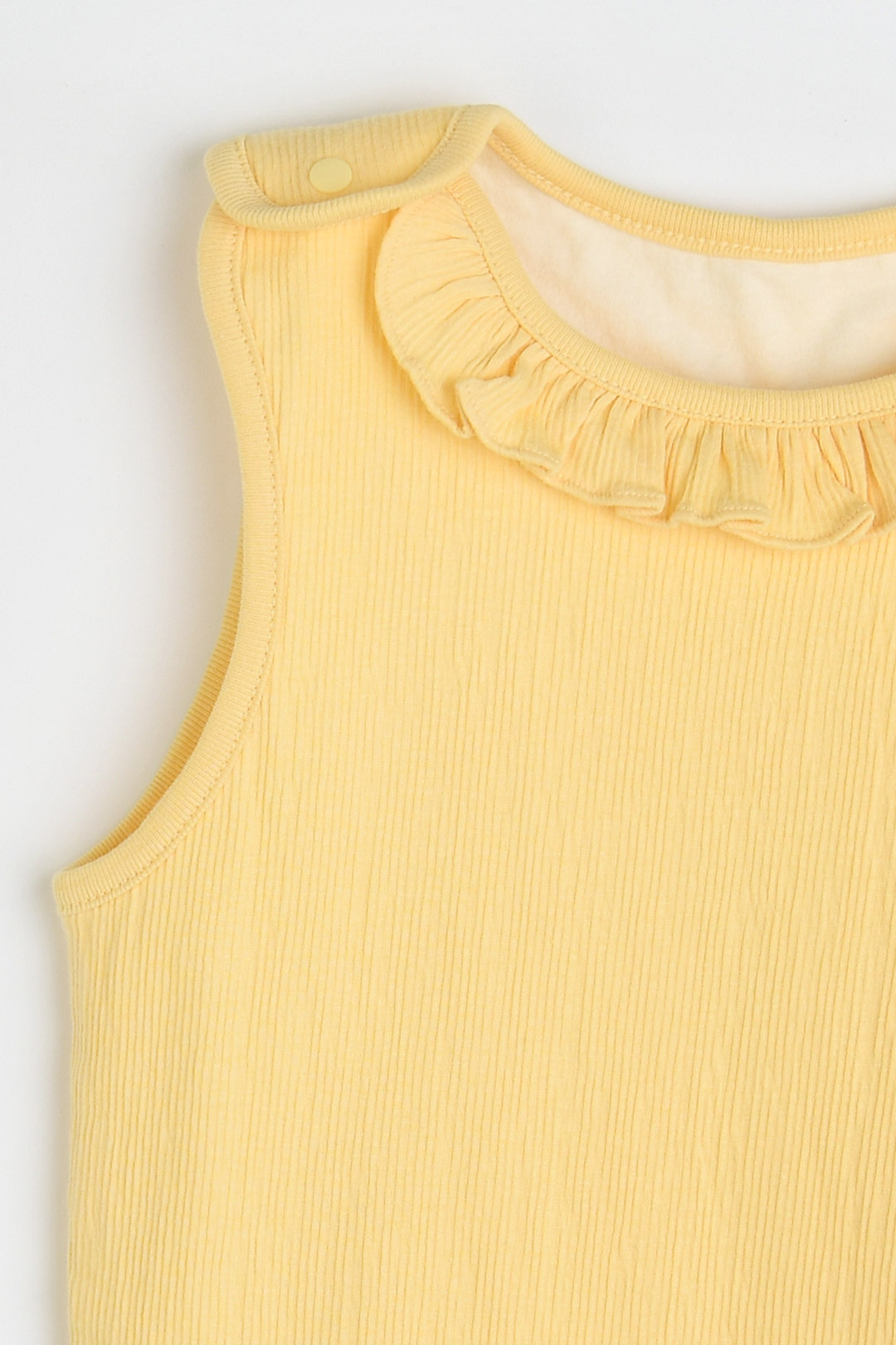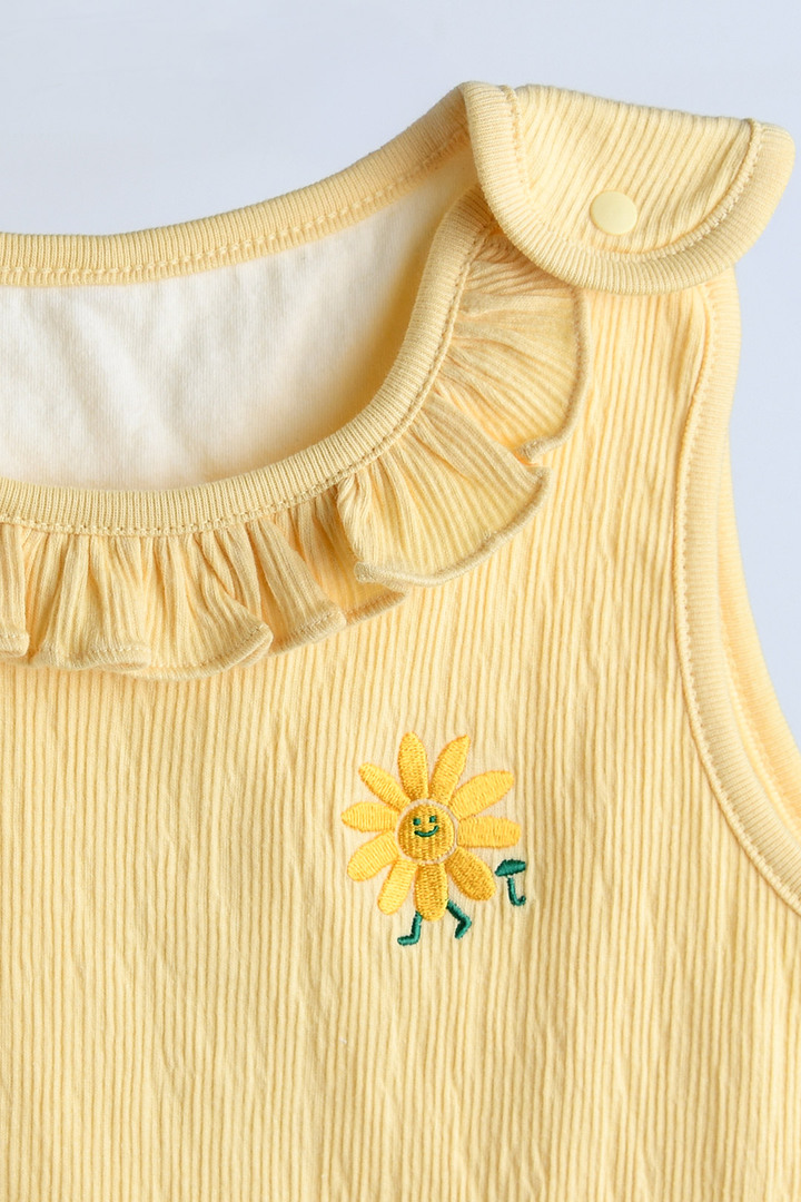 발랄한 옐로우 컬러와 프릴 디테일로 사랑스러운 분위기를 연출하는 수면 조끼