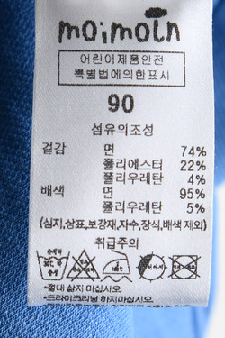 제품소재 (겉감 ) 면74% 폴리에스터22% 폴리우레탄4% (배색)면95%폴리우레탄5%