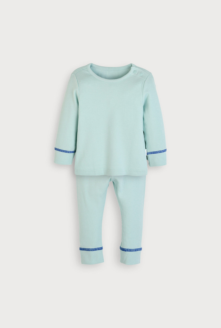 항균 및 소취 효과가 우수한 부드러운 밤부 소재로 활동이 많은 우리 아이가 불편하지 않게 밤부골지스판 소재를 사용하여 피부에 자극 없이 닿고, 손,발목에는 봉사 컬러 배색으로 포인트를 준 실내상하