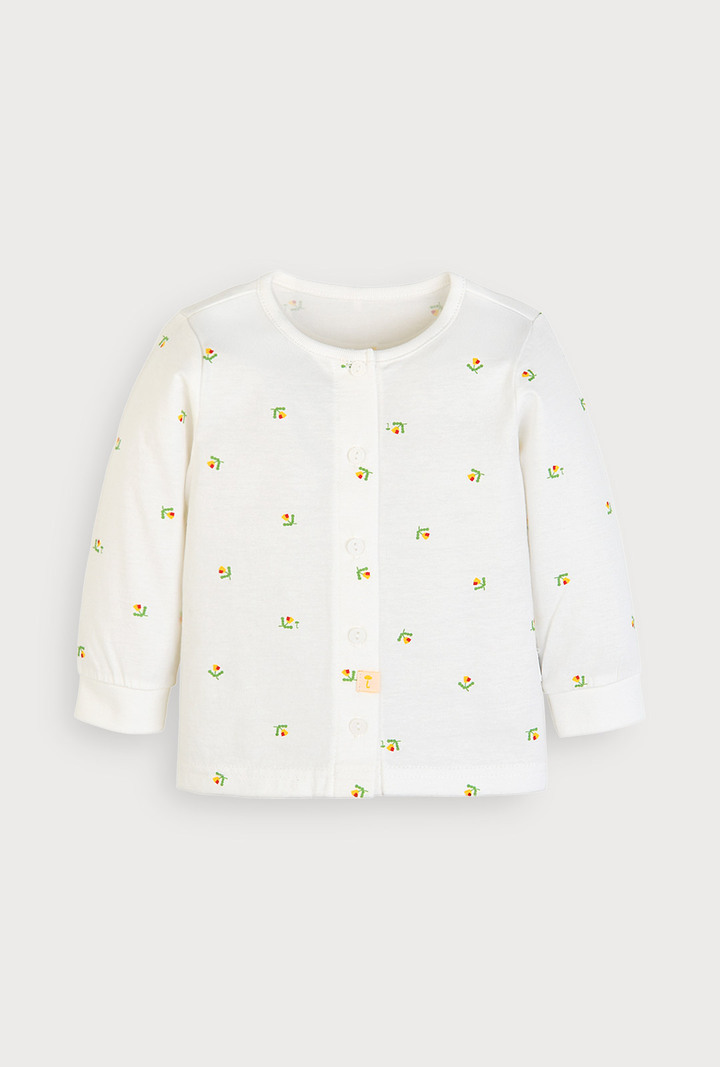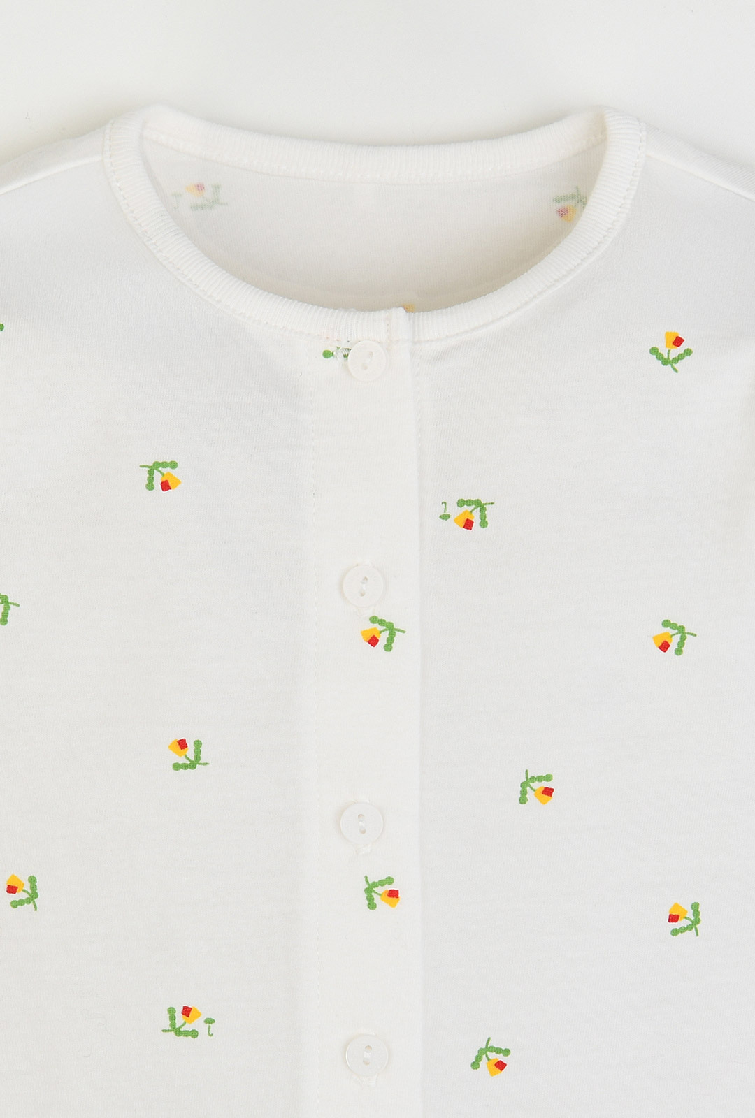 ◆ Check Point 100% 면 소재: 부드러운 30수 싱글 원단으로 자극 없는 착용감 귀여운 나염: 도형 플라워 모티브와 레드 컬러 포인트가 더해진 화사한 디자인 편안한 피팅: 활동성을 고려한 보통 두께감과 적당한 신축성 사이즈별 맞춤 설계: 아이의 성장 단계에 맞춘 상의 여밈 방식 및 트임 위치 변경 ◆ 상세 스펙 상품코드: M261NNN17P 사이즈: 80 / 90 / 100 / 110 / 120 소재: 면 100% (30수 싱글) 세탁: 손세탁 권장 ◆ Q&A Q. 겨울에 입히기엔 너무 얇지 않나요? A. 30수 싱글 원단의 '보통' 두께감으로 제작되었습니다. 겨울철 따뜻한 실내에서 입히기 적당하며 다른 옷 안에 내의로 활용하기도 좋습니다. Q. 단추 위치가 사이즈마다 왜 다른가요? A. 성장 단계별 편의를 위함입니다. 기저귀를 갈기 쉬운 80은 전체 단추, 활동성이 커지는 90~110은 어깨 단추 방식입니다. Q. 세탁 후 나염이 지워지거나 물이 빠지지는 않나요? A. 퀄리티 높은 나염 공법을 사용하였으나 면 소재 특성상 찬물 손세탁을 권장합니다. 세탁 시 뒤집어서 가볍게 빨아주시면 선명한 컬러감을 더 오래 유지할 수 있습니다.