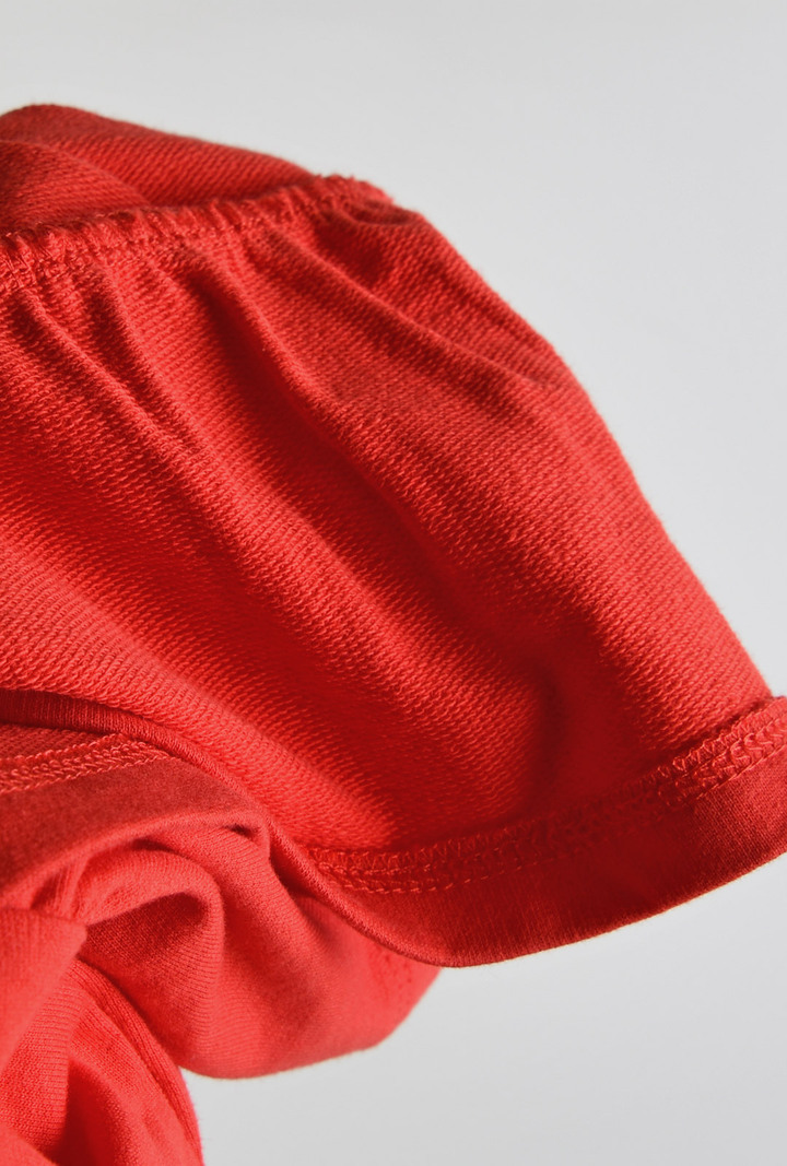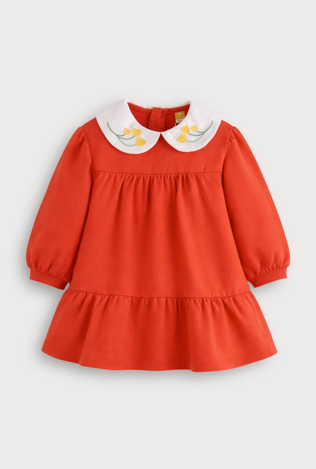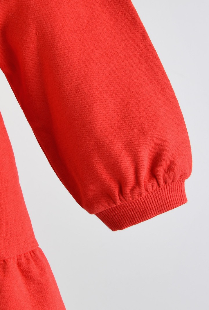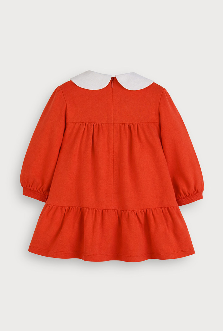 화사한 레드 컬러와 튤립 자수 카라가 러블리한 캉캉 원피스