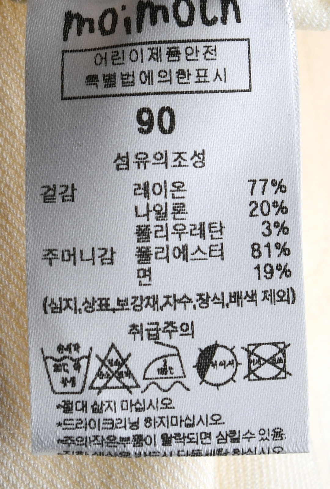 | 세탁방법 및 취급시 주의사항 | 본 세품은 손세탁 하십시오(케어라벨 참고) |