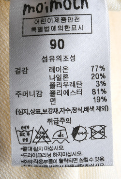 (겉감)레이온77%,나일론20%,폴리우레탄3%(주머니감)폴리에스터81%,면19% |