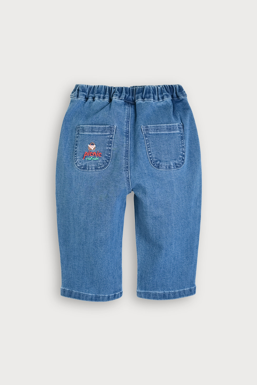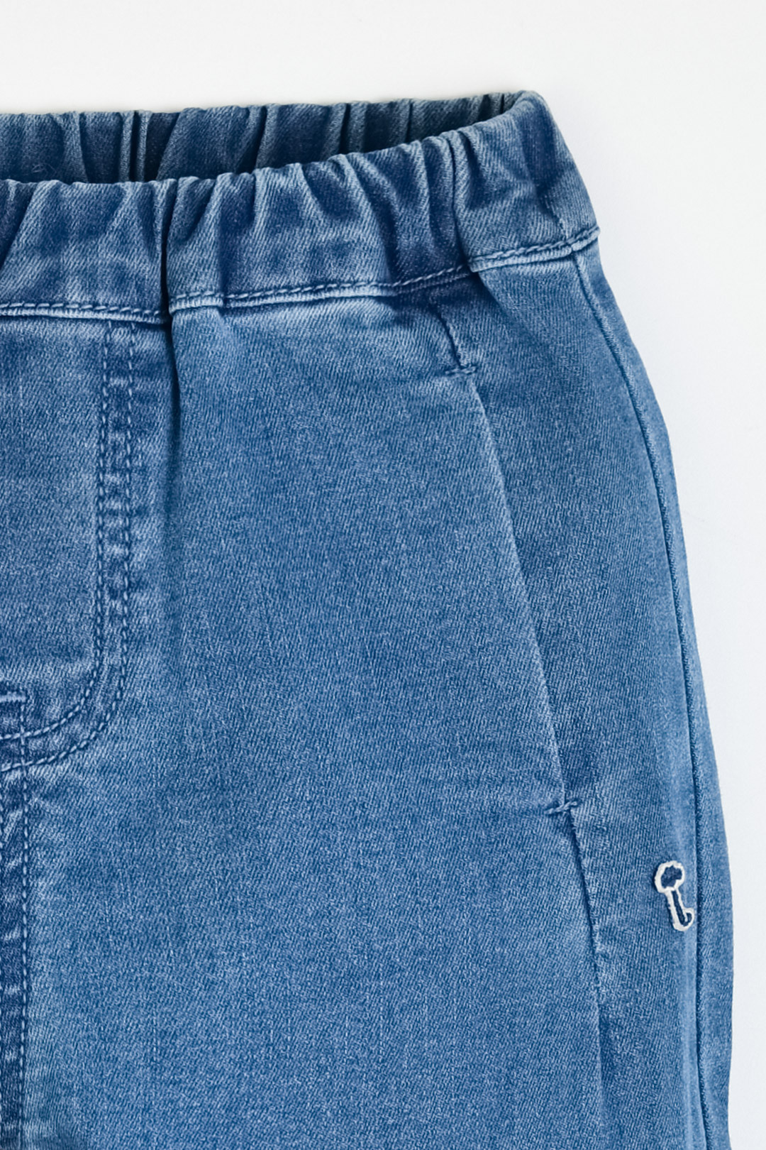 미드 톤과 라이트 톤의 두가지 컬러 계열로 제안한 스판성 좋은 데님 팬츠. 뒷주머니에 각 컬러 계열에 따라 다른 자수포인트가 들어간 디자인. 앞쪽 절개된 부분에 숨은 듯 위치한 포켓이 유니크한 아이템