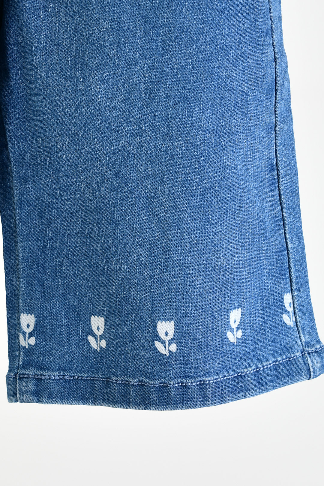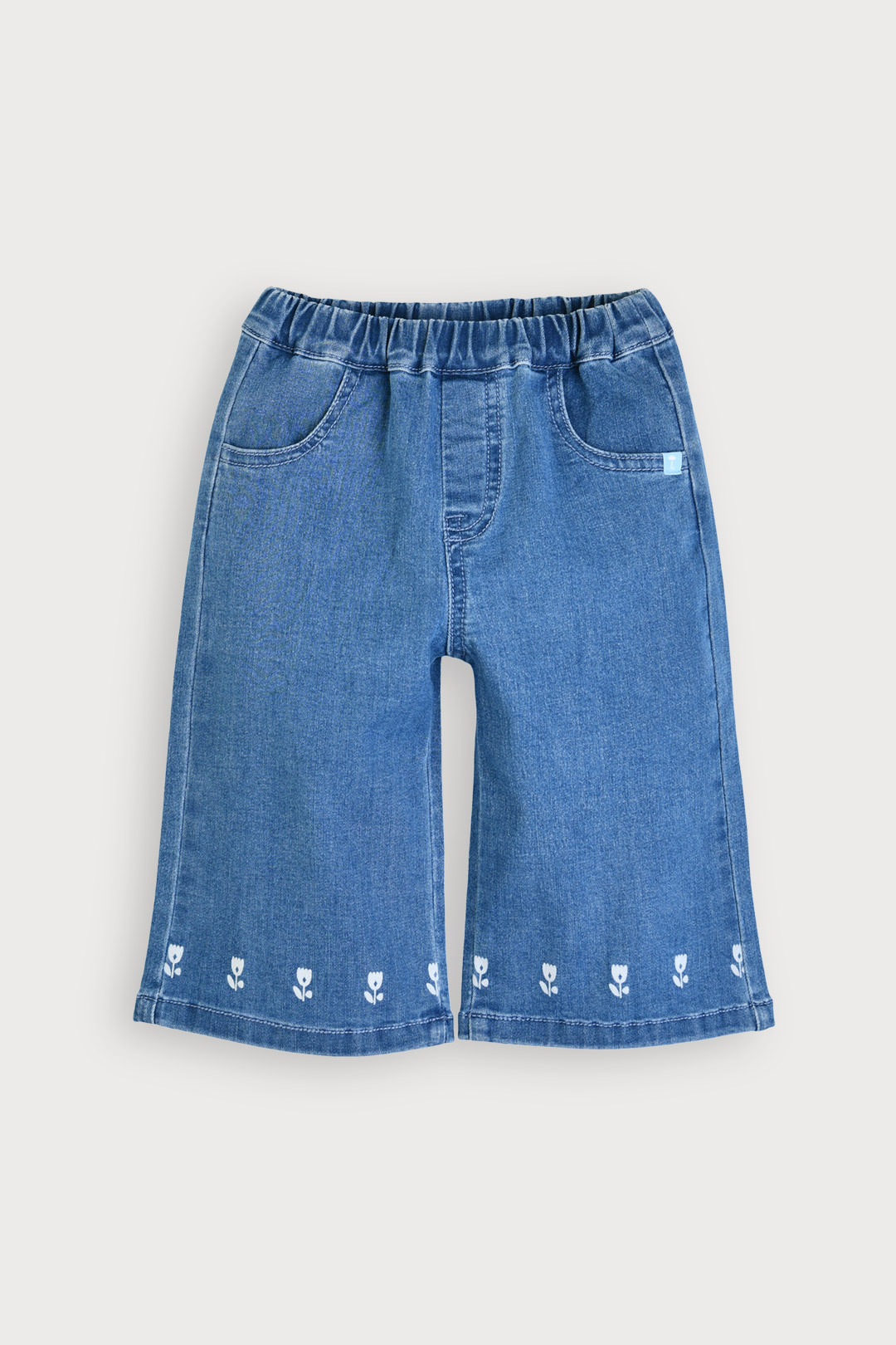 화사한 컬러감의 전판 패턴 연청 데님과 밑단 포인트 나염의 진청 데님으로 제안해 취향에 따라 선택 가능한 데님 팬츠. 스판성 좋은 소재로 활동성이 좋고 트렌디한 일자 핏으로 멋스럽고, 튤립 모양 뒷 포켓이 포인트인 아이템