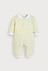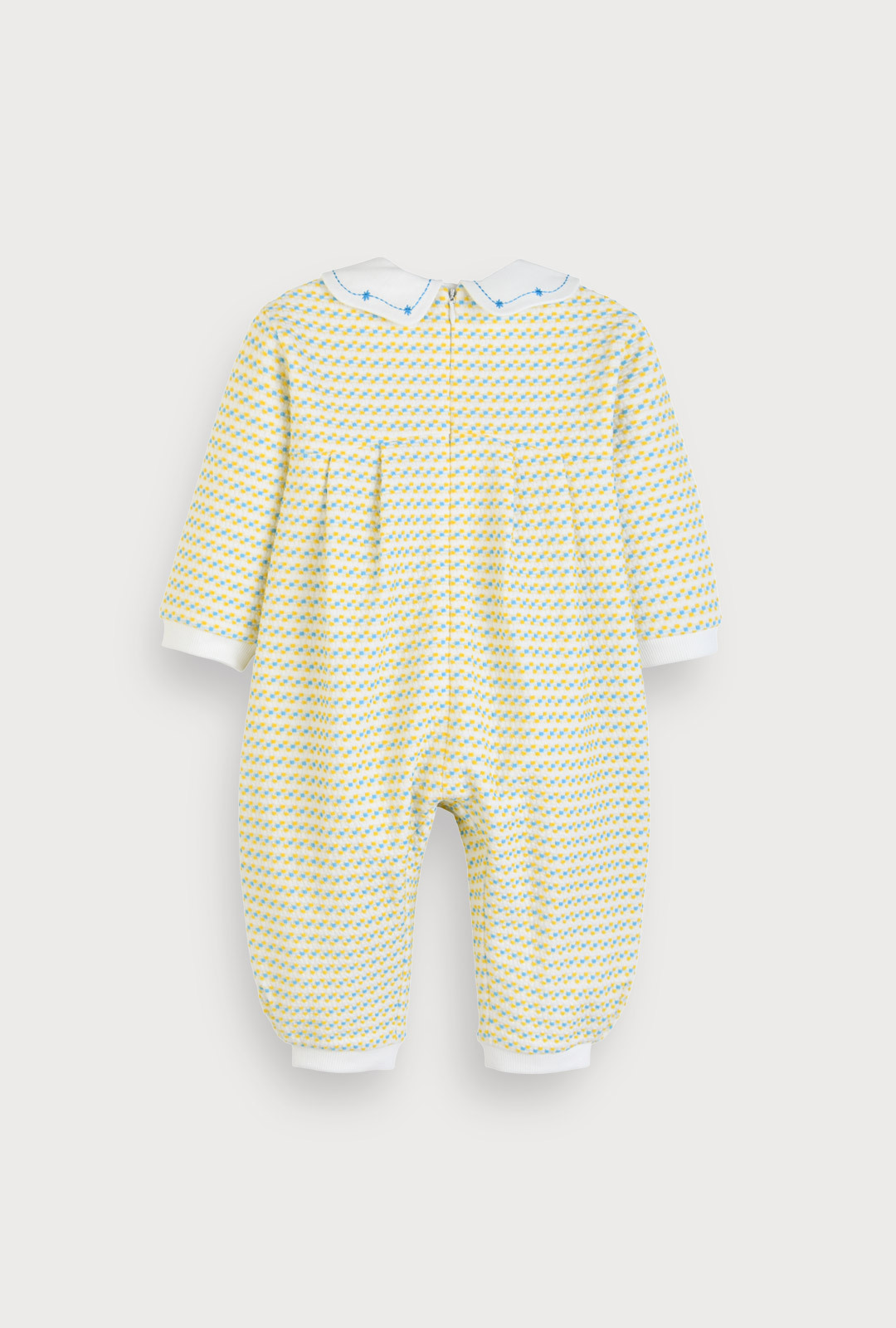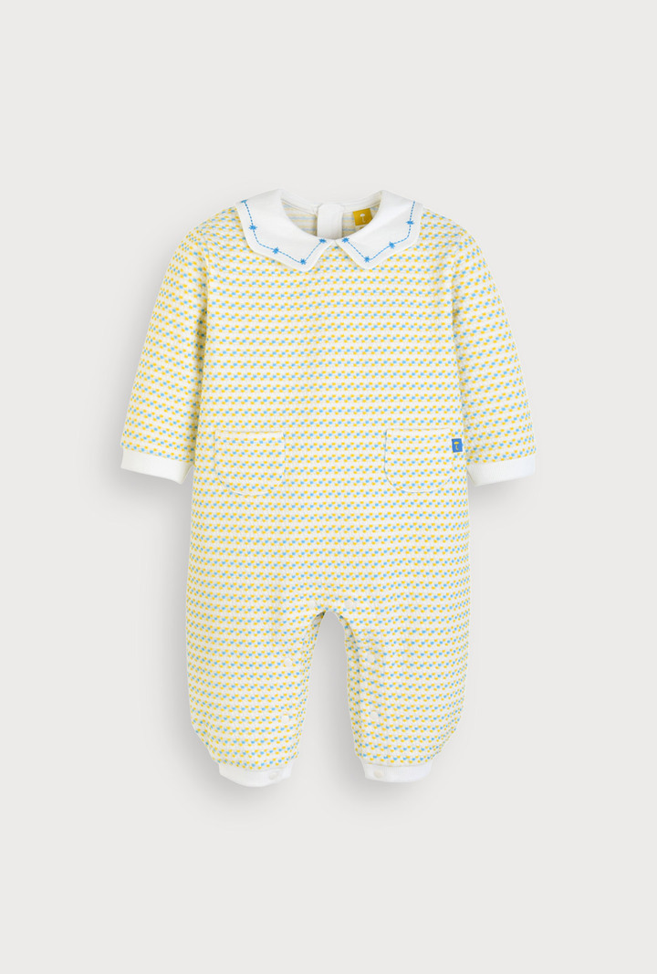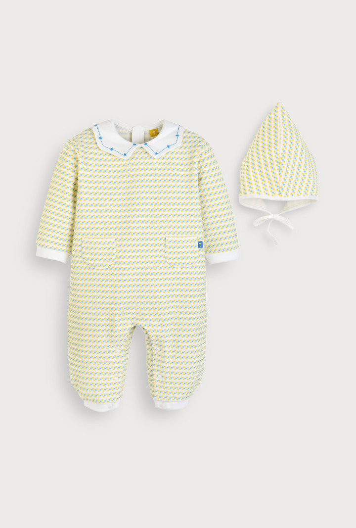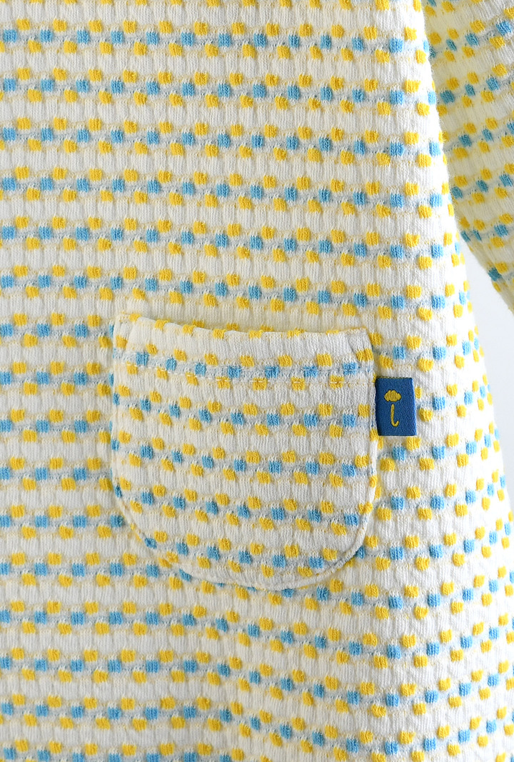 밝고 귀여운 컬러 조합과 니트 같은 조직감으로 고급스러움을 더한 우주복 세트