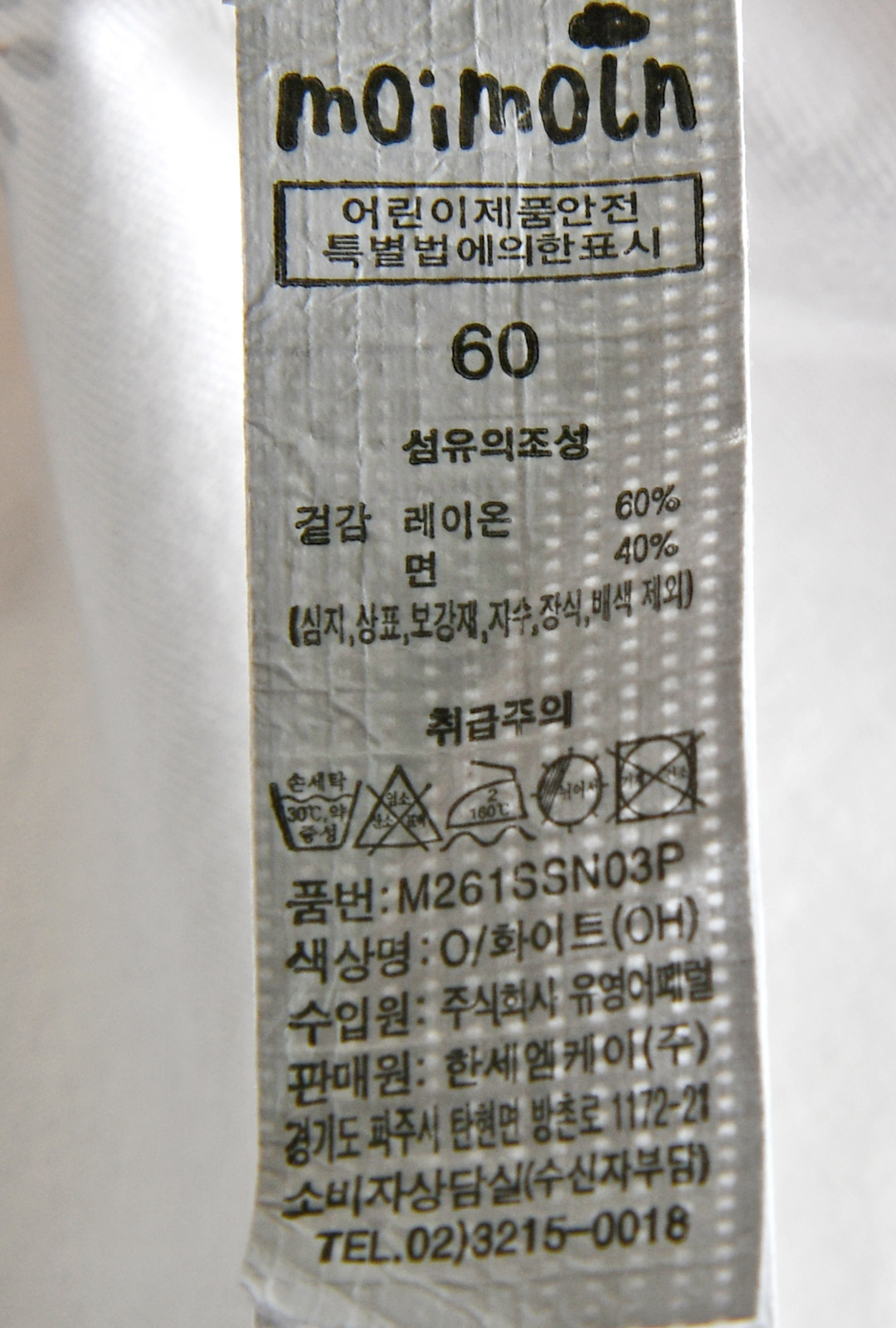 | 세탁방법 및 취급시 주의사항 | 본 세품은 손세탁 하십시오(케어라벨 참고) |